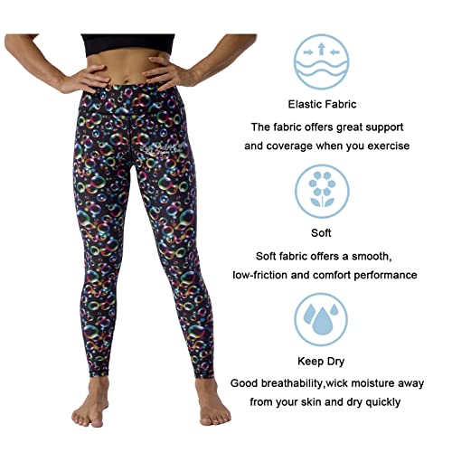 UIUO-UIPEU Tie Dye Leggings for Women High Waist Yoga Pants with Pockets Workout Compression Printed Leggings Colourful Bubbles Large