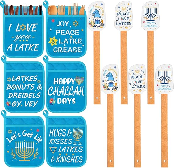 12 Pcs Hanukkah Pot Holders with Silicone Spatula Set Washable Heat Resistant Potholders Hanukkah Baking Supplies Hanukkah Hostess Gifts for Cooking Baking Grilling