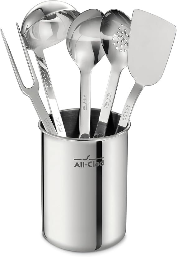 All-Clad Professional Stainless Steel Kitchen Gadgets and Caddy 6 Piece Kitchen Tools, Kitchen Hacks Silver