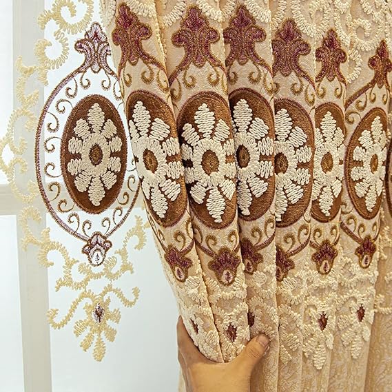 ELKCA Jacquard Embroidered Curtains for Bedroom Luxury Beige Curtains for Living Room, Grommet Top, 2 Panels (Beige, 52" W x 96" L)