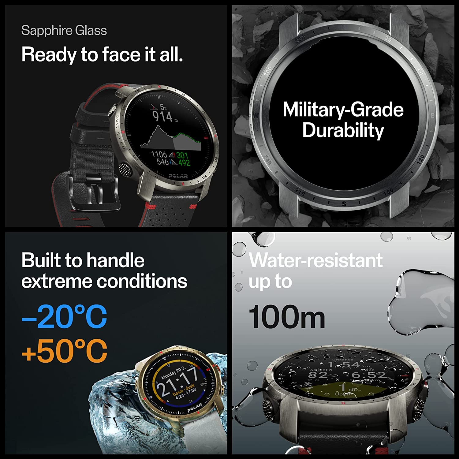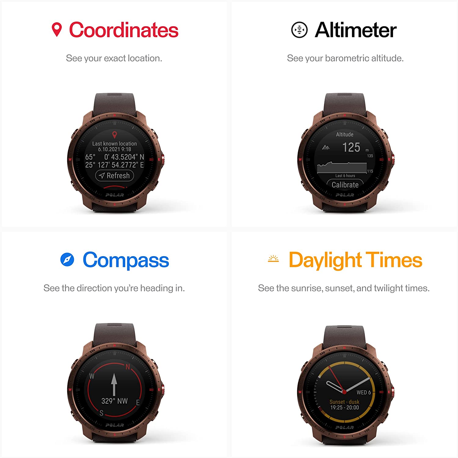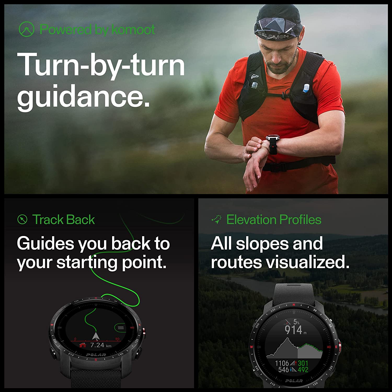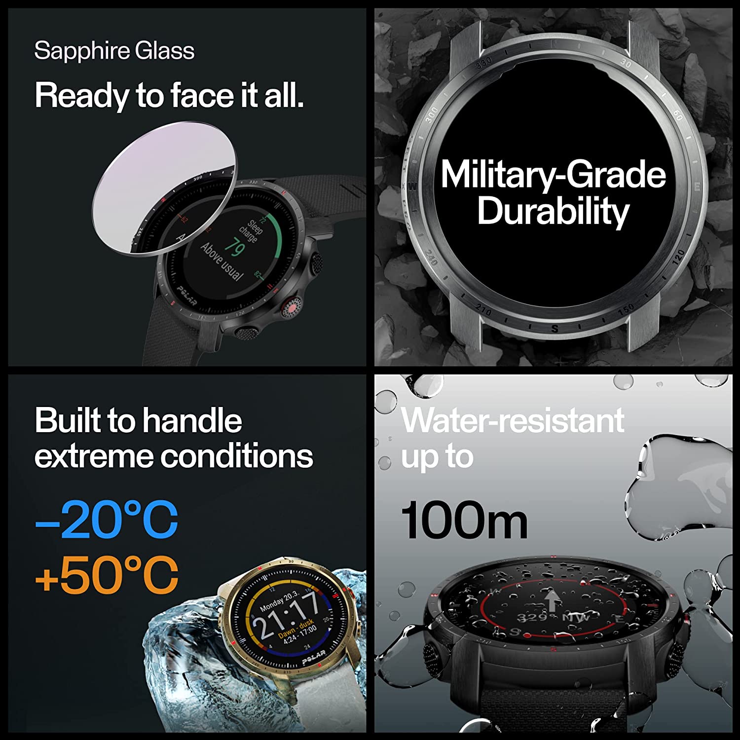 Go Wherever Your Heart Takes You. Handle any environment with military-grade durability and scratch-resistant sapphire glass. Trust your equipment with ultra-long battery and Precision Prime OHR tracking. Know where you stand with turn-by-turn guidance and powerful built-in GPS. Live for adventure with all-new navigation tools, always-on outdoor features, and Polar's ultimate training solutions. Polar Grit X Pro equips you with everything you need to explore the world and understand your body - realizing just how incredible they both are.