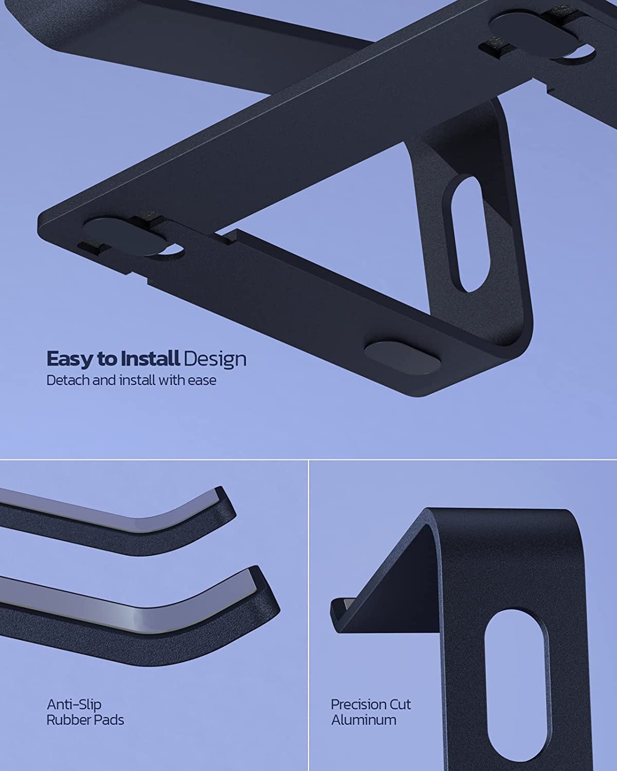 • 【Detachable & Simple Installation】 This laptop stand has premium CNC cut aluminum alloy material that will make sure it’s easy to reassemble and fits perfectly without any issues. With our easy to disassemble design you can easily detach it into 3 parts and store it to keep your desktop clean.