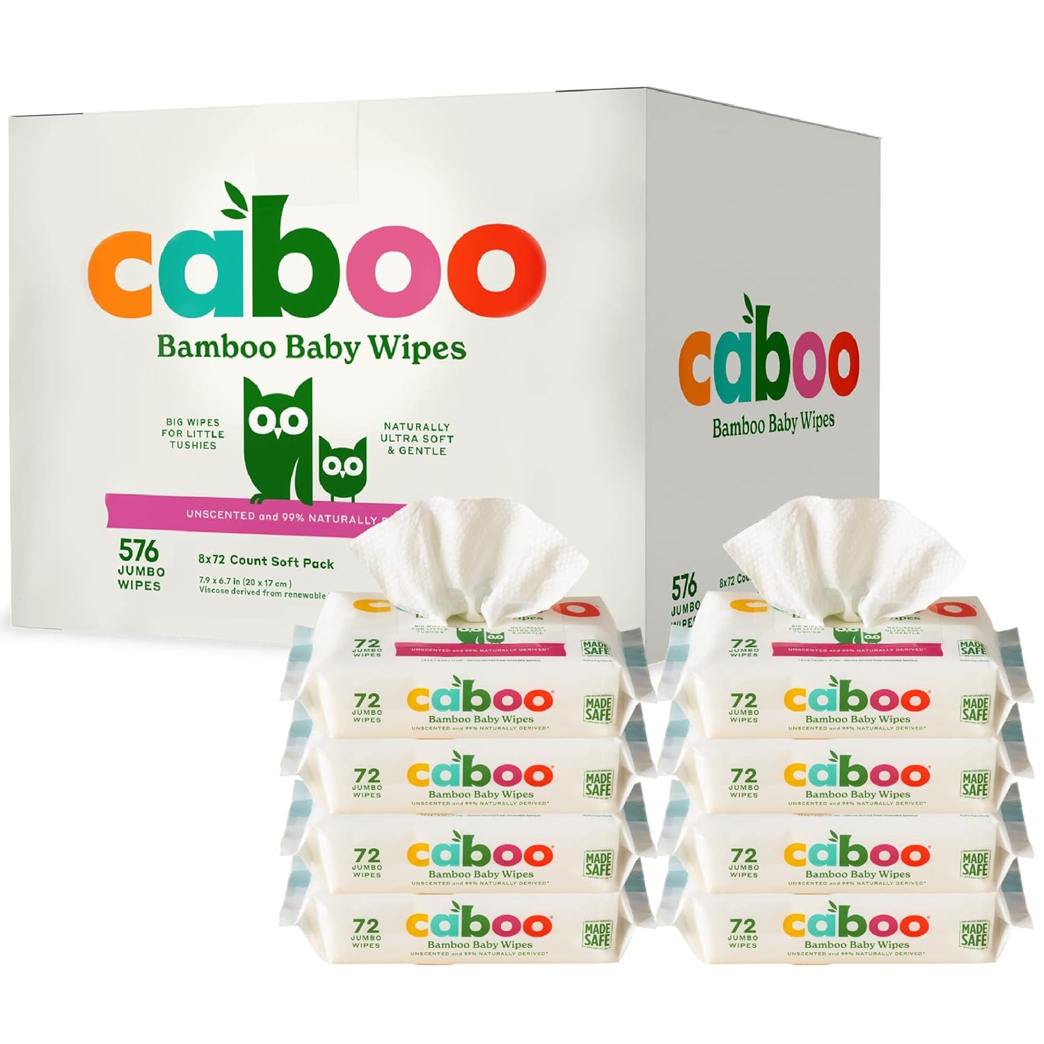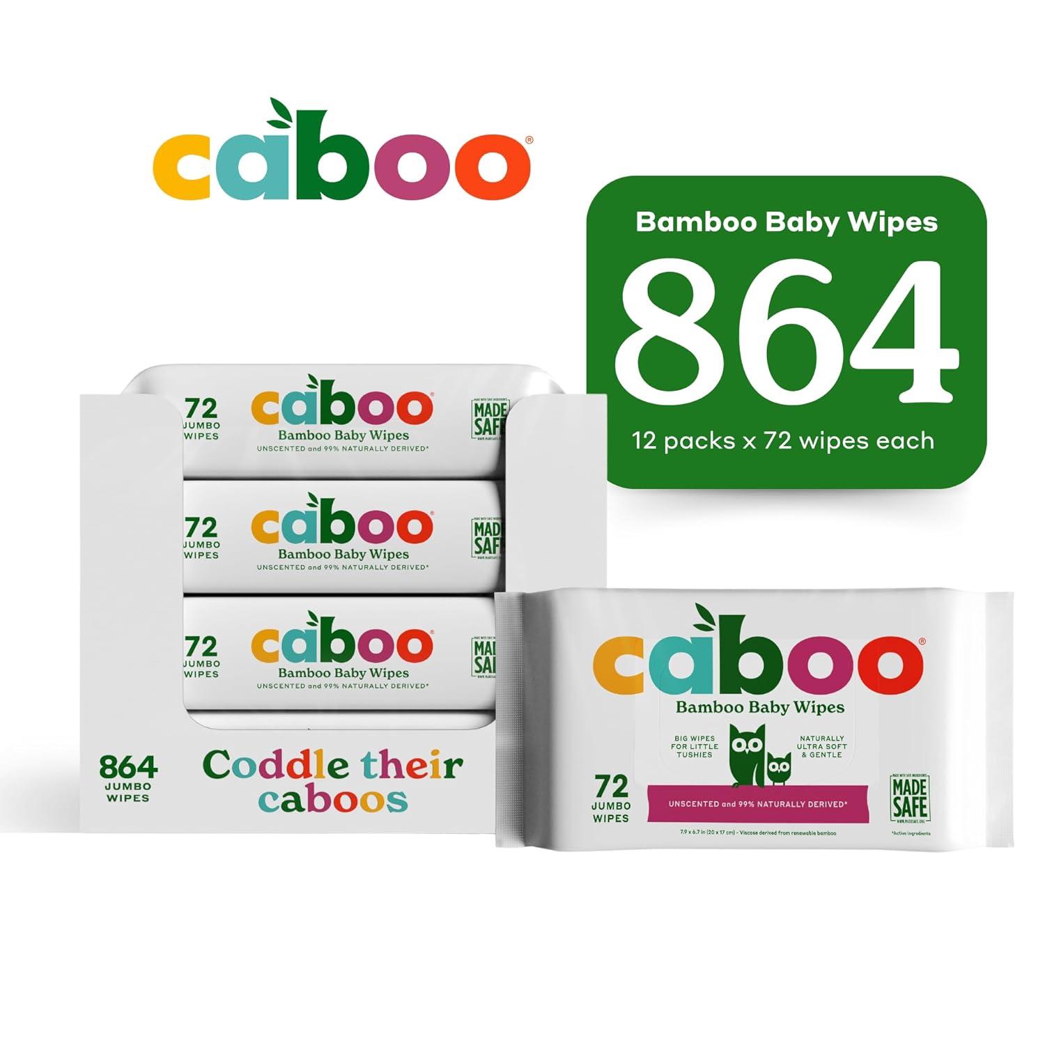 Caboo Viscose from Bamboo Baby Wipes, Made with Eco-Friendly, Honest, Certified Made Safe Ingredients, Unscented Baby Wipes Good for Sensitive Skin, 72 Wipes Per Travel Pack, Total of 216 Wet Wipes