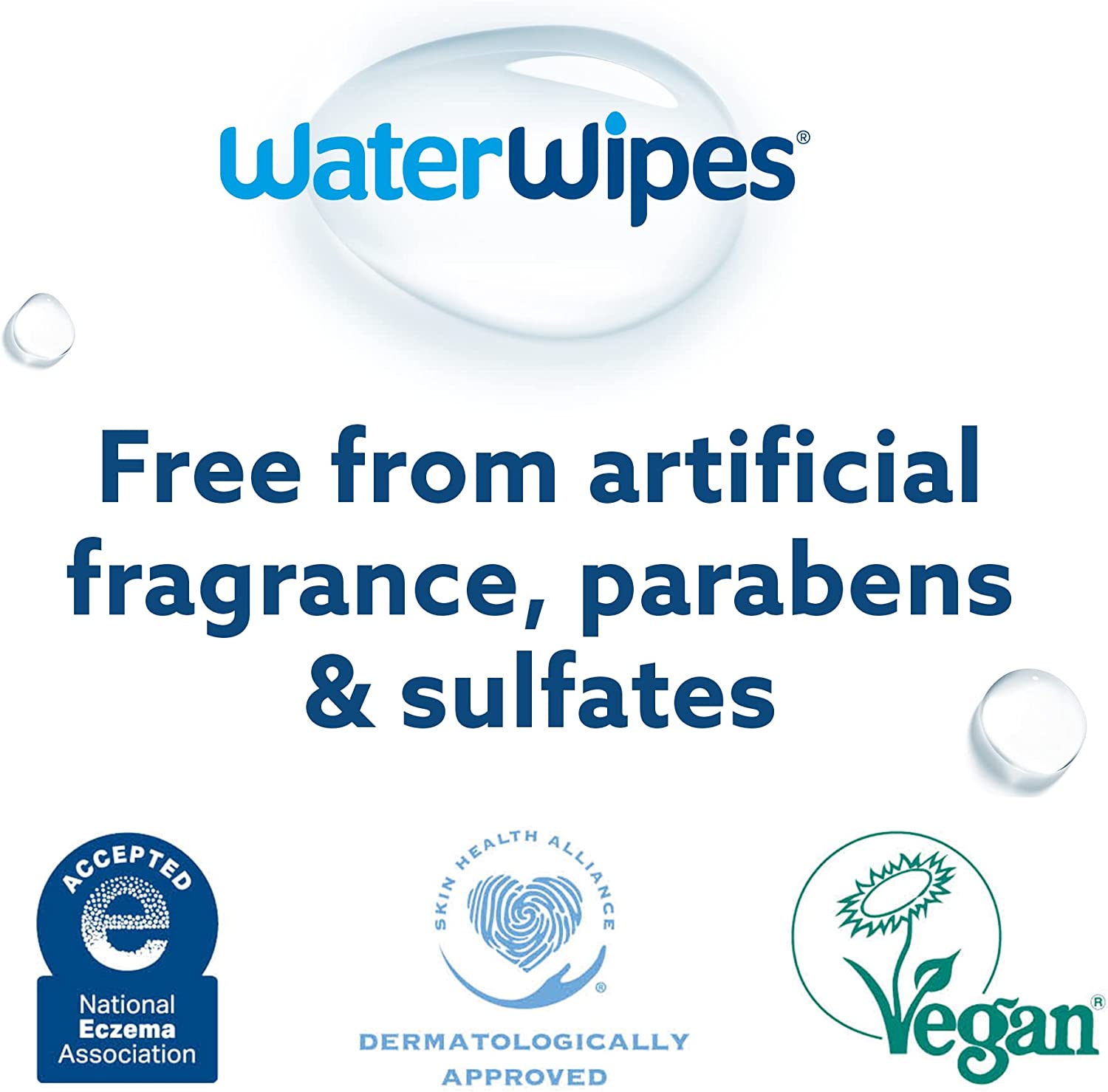 • TRUSTED BY DERMATOLOGISTS: Suitable for eczema-prone skin and allergy sufferers, WaterWipes are accepted by the National Eczema Association of America, Dermatologically Approved by the Skin Health Alliance and registered by the Vegan Society.