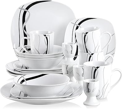 VEWEET, Series Fiona, Dishes Set for 4, 20 Pieces Dinnerware Sets, Square Plates and Bowls Sets with Mugs, Black and White Dish Sets Plate Set and Egg Cups
