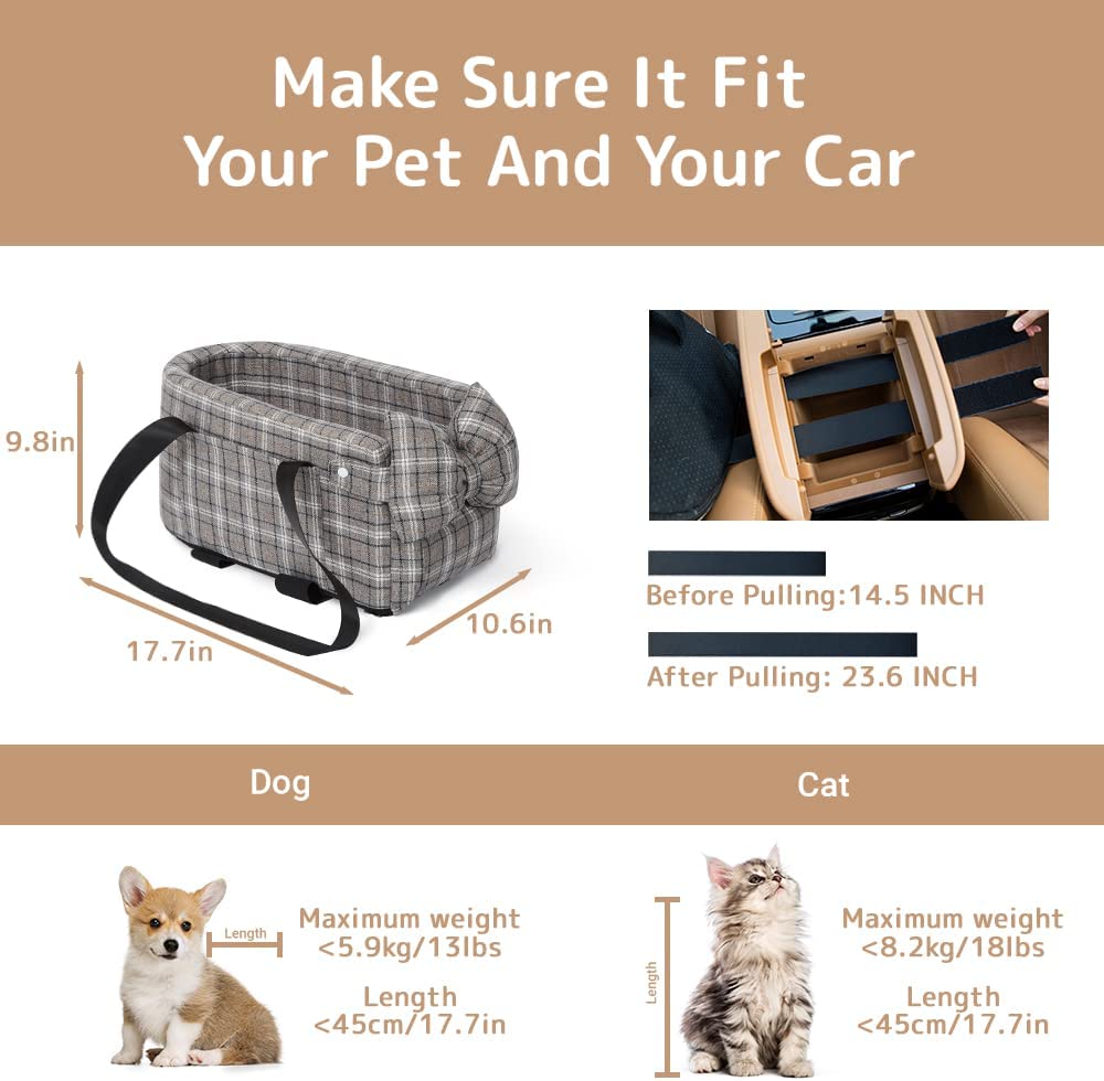 Anttyscar Console Dog Car Seat - Small Dog Car Seat for Pet UP to 13 lbs, More Stable Center Console Dog Seat, Puppy Booster Seat with Seatbelt and Waterproof Pee Pad, Comfortable Dog Car Carrier