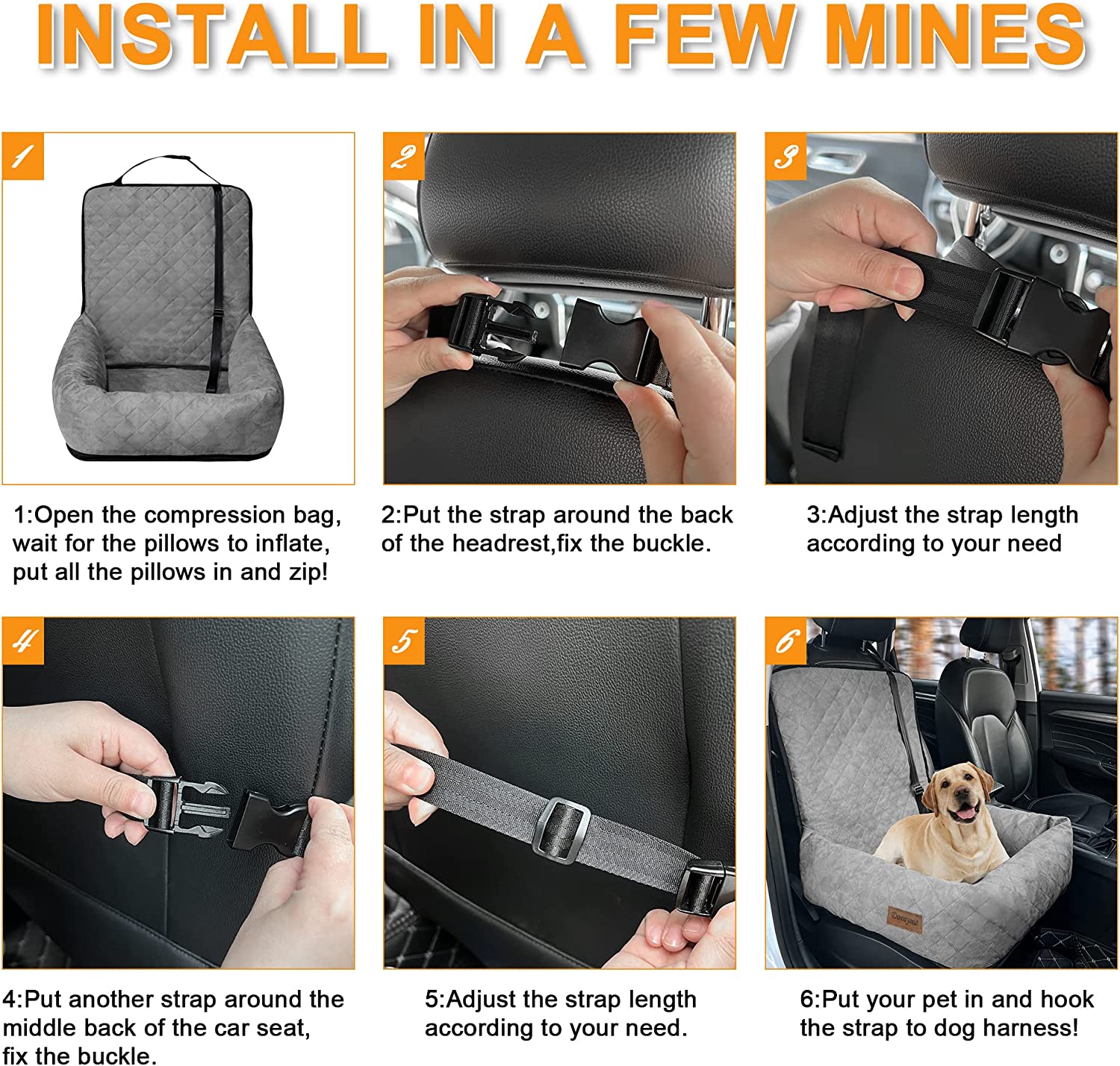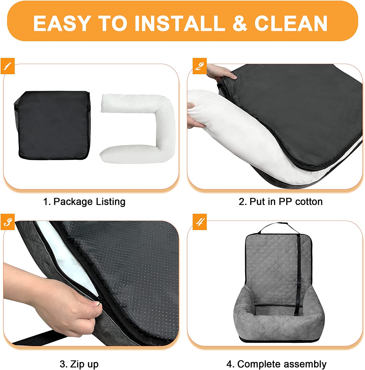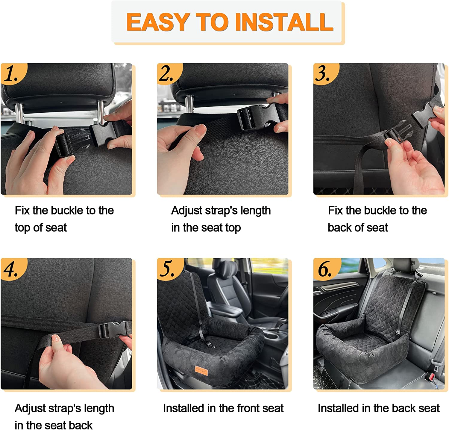 • 【Safety of Dogs】The dog car seat design has two nylon straps that can be adjusted up and down to secure the raised seat. The four sides of this car dog bed are filled with PP cotton, which has good elasticity and can support the pet's body well when braking. So you can focus on driving and enjoy the upcoming beautiful journey.