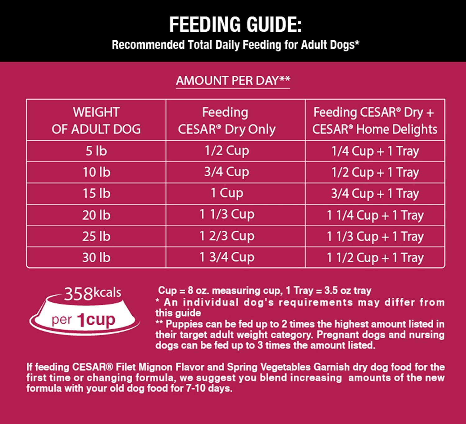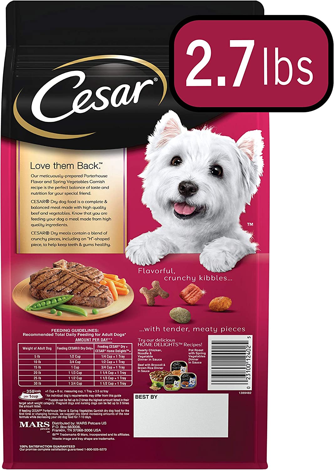 • CESAR Dry Dog Food is made with real beef as the first ingredient for a taste dogs love