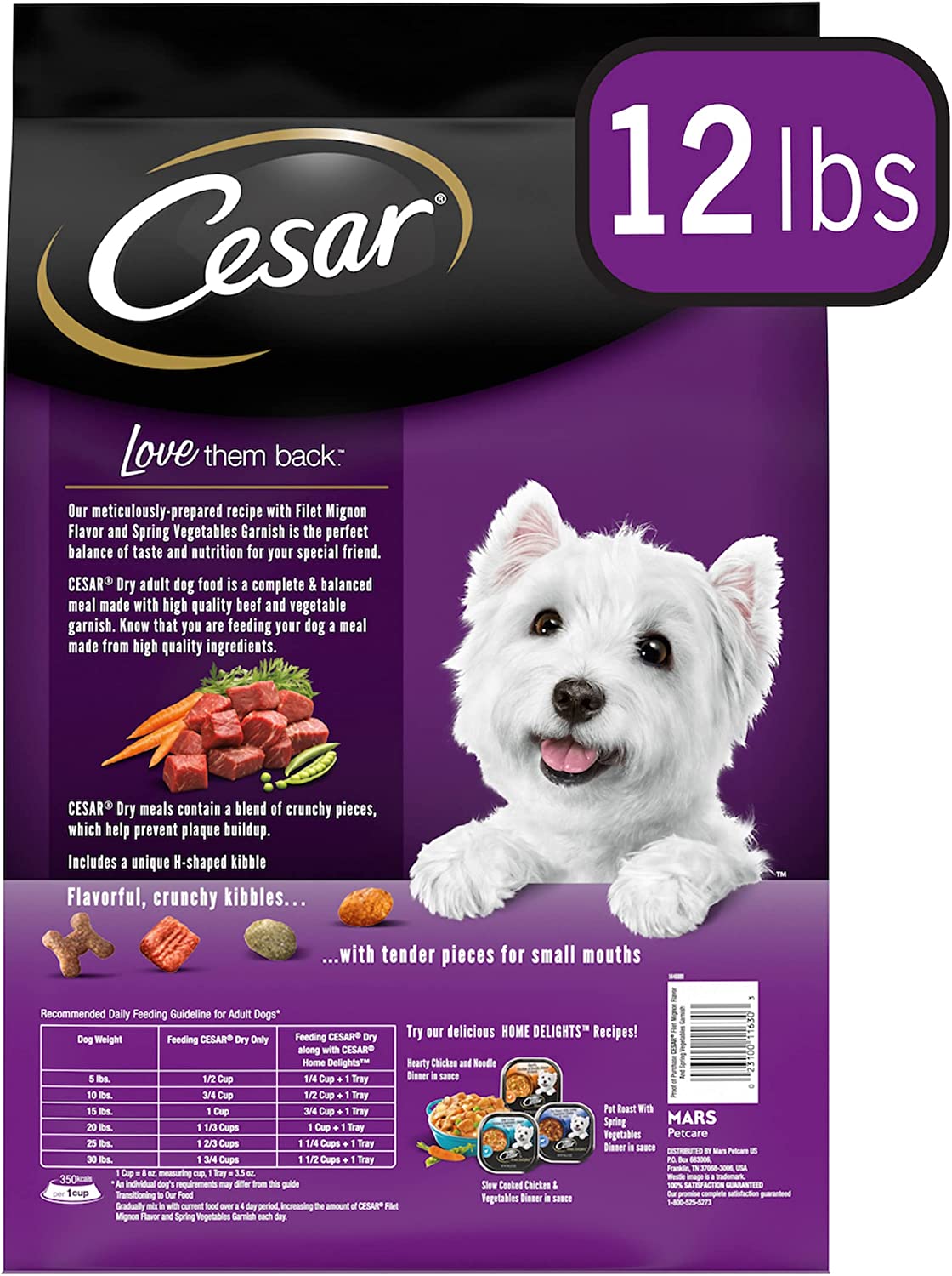 CESAR Small Breed Dry Dog Food Filet Mignon Flavor with Spring Vegetables Garnish Dog Kibble, 12 lb. Bag