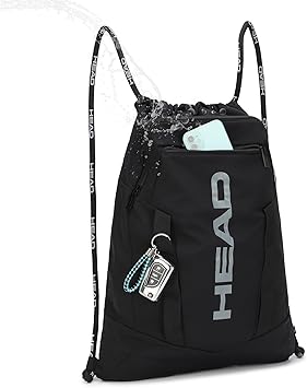 HEAD Waterproof Gym Sackpack for Sport with 2 Zipper Pockets, Large Drawstring Backpacks for Men & Women, Lightweight Draw String Backpack for Travel/Basketball/Beach/Swim/Football, Black