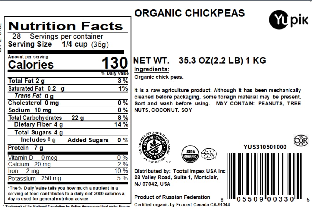 Yupik Organic raw chickpeas are dried legumes. For best results, soak chickpeas overnight then boil for approximately an hour (or until tender). chickpeas are mildly nutty in flavor and tender in texture once cooked. Cooked chickpeas can be added to a variety of savory dishes, such as soups, salads, stews, humus, and more.