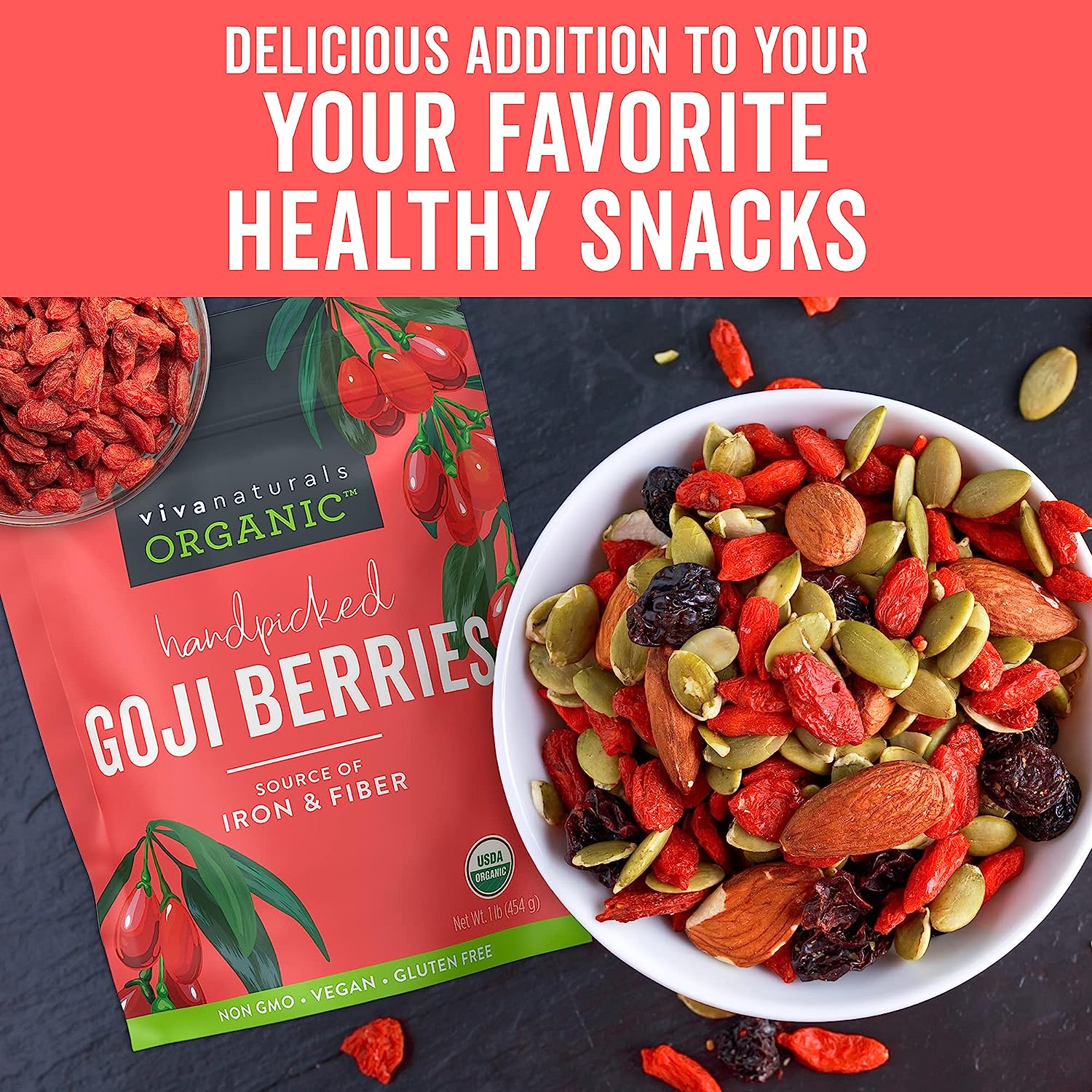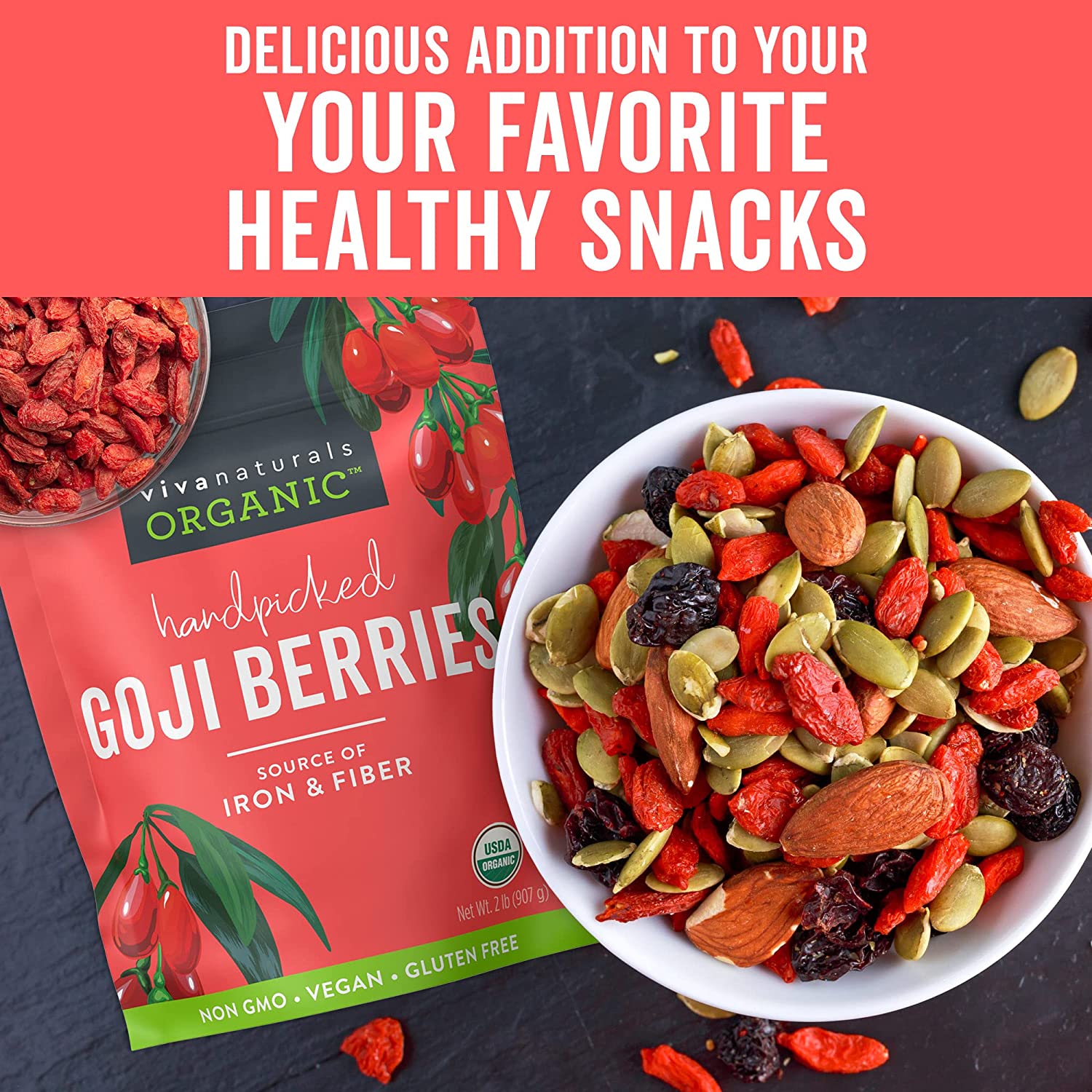 The perfect vegan snacks for adults, you can add them to your favorite smoothies, teas, trail mixes, salads and more. Goji berries add a perfect tangy yet sweet flavor to all your kitchen favorites. Simple, delicious, high in fiber and low-fat.