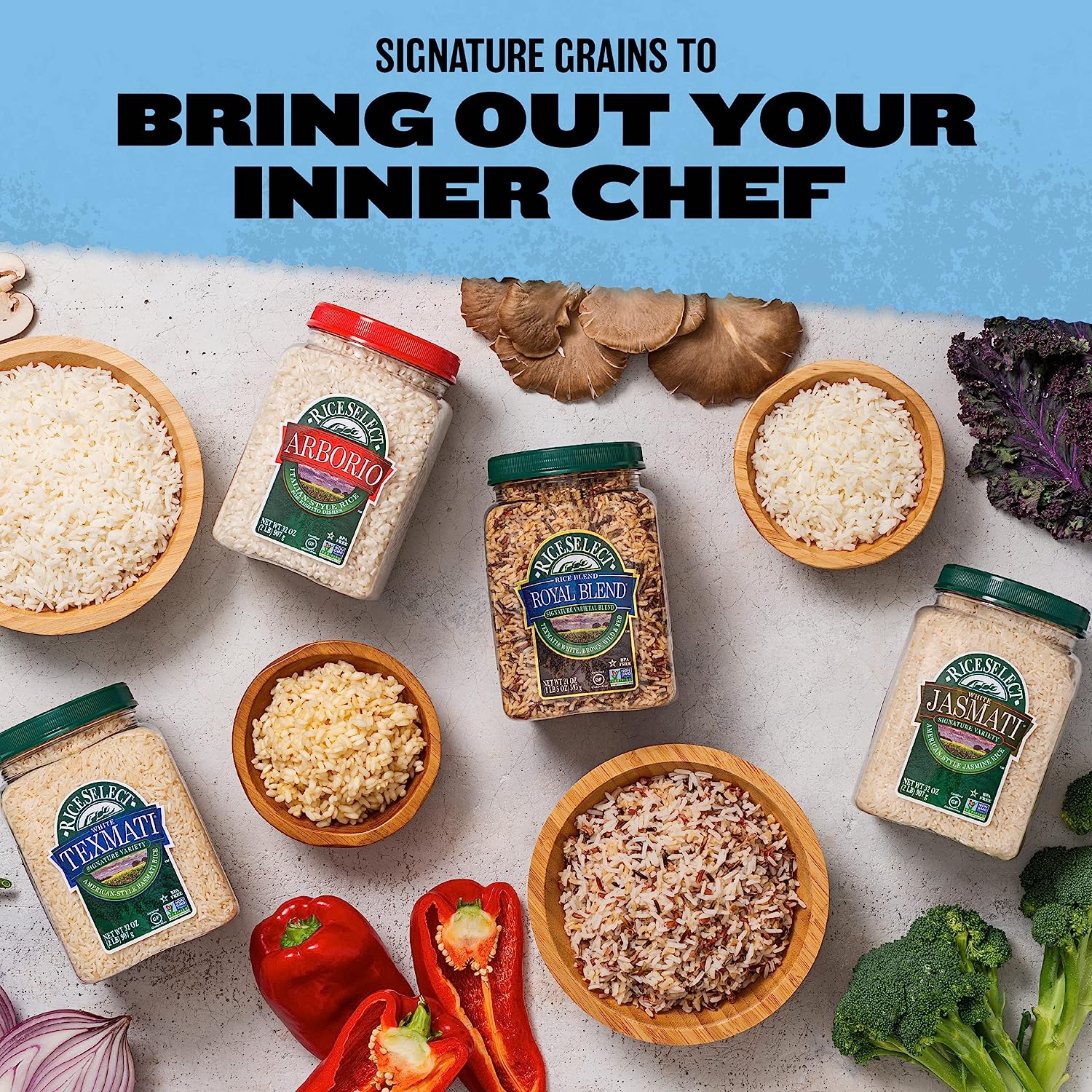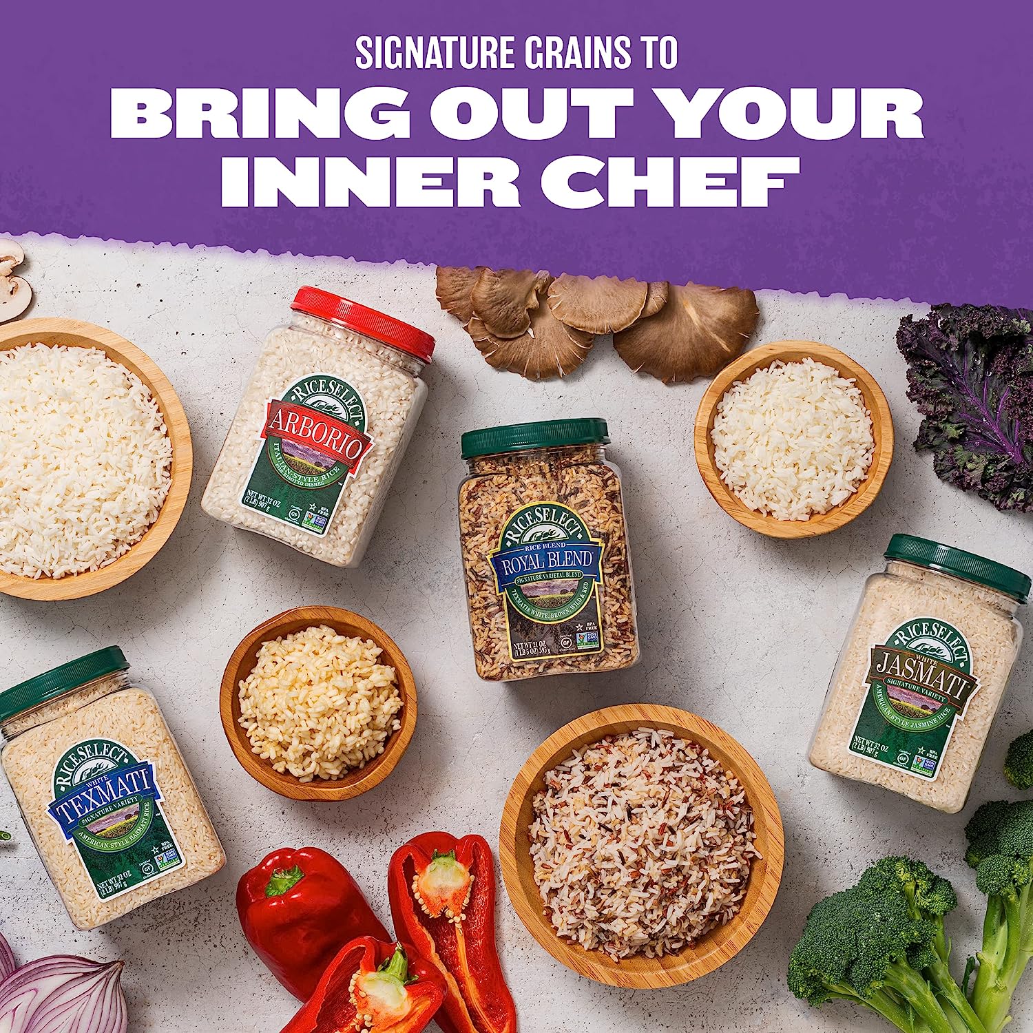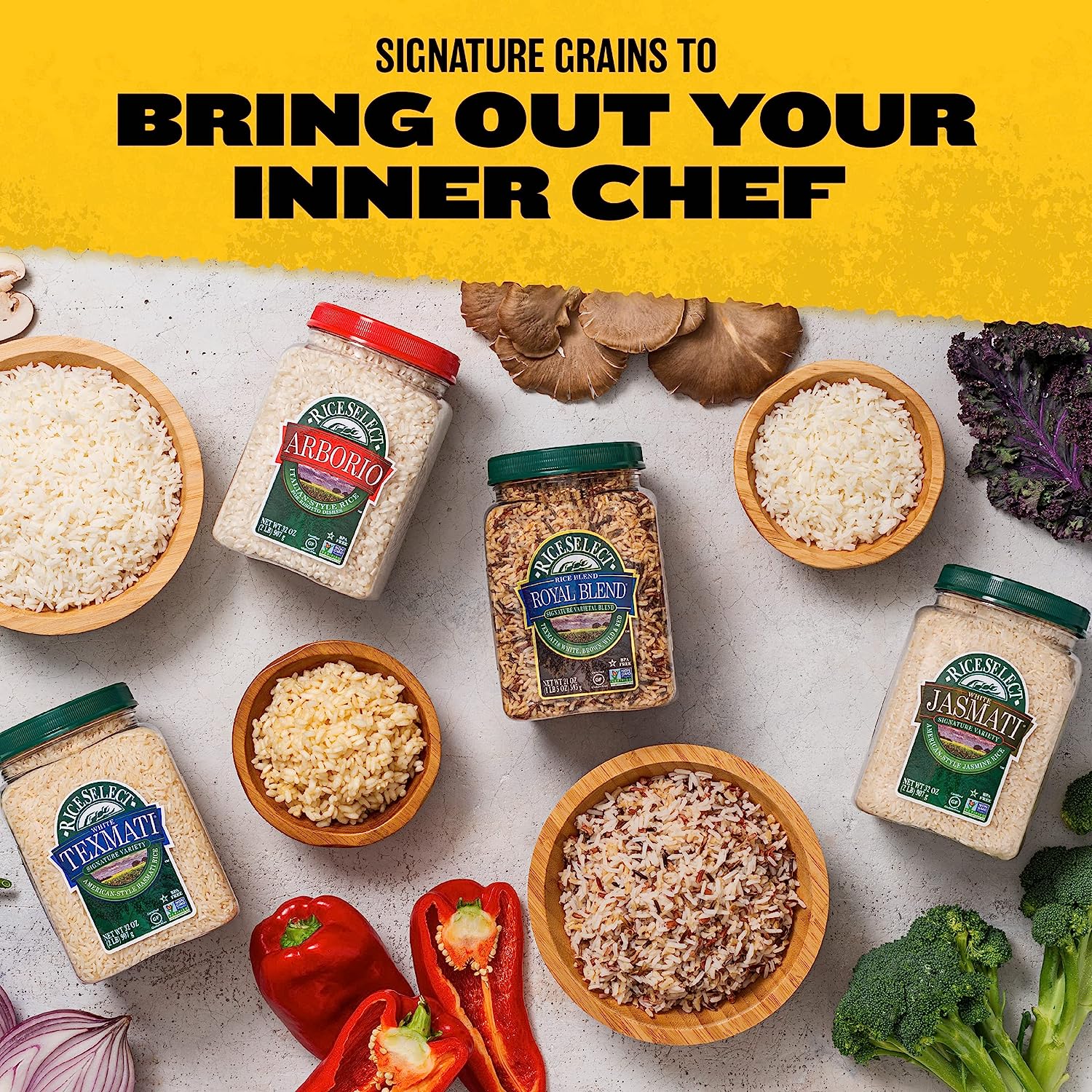Get creative and bring your spontaneous brilliance to the kitchen to create an unforgettable meal with RiceSelect Arborio Rice! Arborio Rice is a bold, medium-grain rice that has a characteristic white dot at the center of the pearly white grain. Primarily used in risotto and rice pudding, Arborio rice develops a creamy texture around a slightly chewy center, displaying an exceptional ability to absorb flavors. The quality of the rice impacts its starch content and ability to achieve an al dente core, an integral factor to achieving an unforgettable risotto. The essential ingredient for crafting new flavors and revisiting old classics, Arborio Rice is the perfect accompaniment to any exploration of flavor and cooks in only 5-10 minutes. Served in our iconic transparent jar with the distinct red cap, our Arborio rice is of the most discerning quality, offering versatility for an impressive array of creative culinary endeavors. For your convenience, our RiceSelect Arborio Rice is Non-GMO Project Verified, Certified Gluten-Free, and packaged in a 32-oz 100% recyclable, BPA-Free jar. RiceSelect is a registered trademark of Riviana Foods Inc.