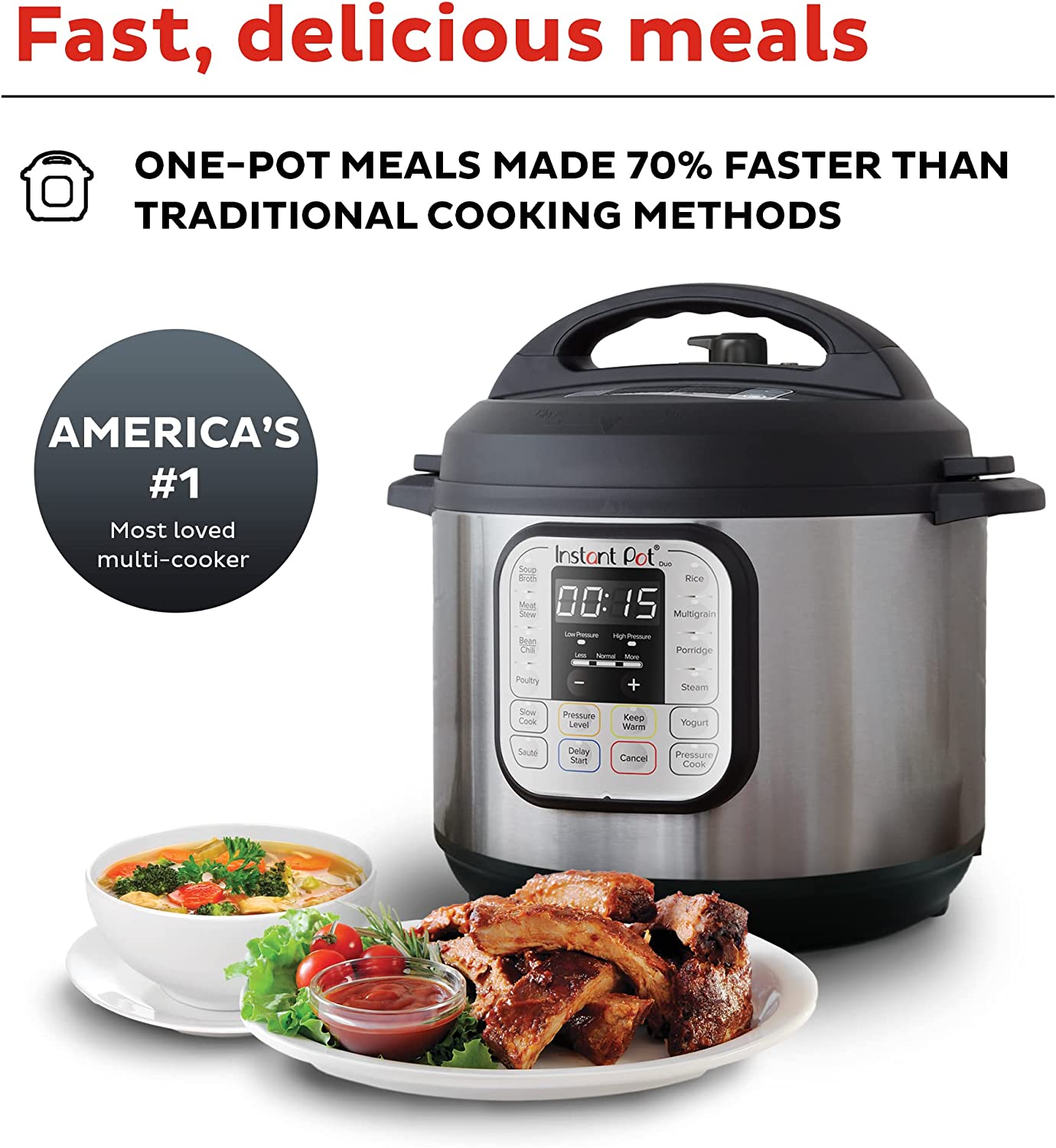 Instant Pot Duo 7-in-1 Electric Pressure Cooker, Slow Cooker, Rice Cooker, Steamer, Sauté, Yogurt Maker, Warmer & Sterilizer, Includes Free App with over 1900 Recipes, Stainless Steel, 6 Quart