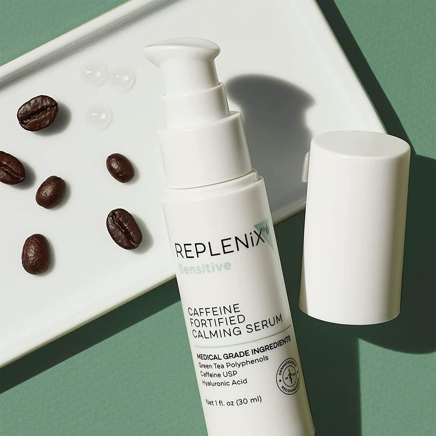 Replenix Caffeine Fortified Calming Serum - Medical Grade Skin Treatment with Hyaluronic Acid for Sensitive Skin, Calming, Reduces Redness, 1 Fl Oz
