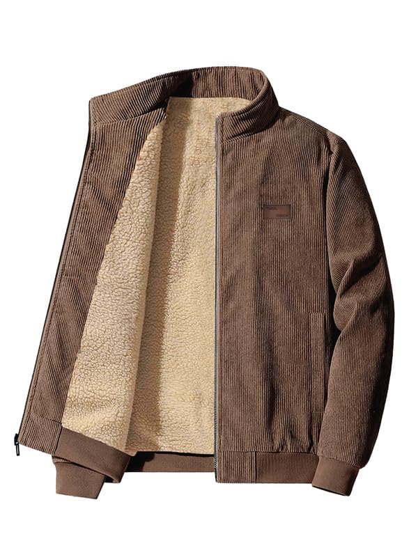 JMIERR Brown Corduroy Jackets for Men Full Zip Up Mock Neck Sherpa Lined Fleece Shackets Winter Coat with Pockets,US 46 (XL),Brown