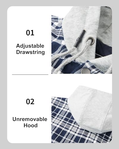 • FEATURE: Flannel coat with unremovable hood and button closure; Adjustable button cuffs; Classic plaid design and casual fashion look.