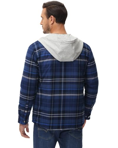 MAGCOMSEN Men's Flannel Jackets for Men with Hood Thicken Plaid Flannel Quilted Shirts Jacket with Unremovable Hood Check Coat Men