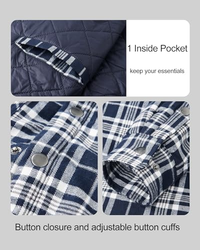 • WARM & WINDPROOF: Flannel jacket with quilted lined for comfortable; Padded with polyester quilted to keep wind out and create extra warmth.