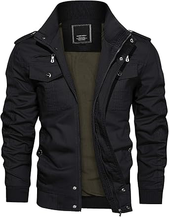 CRYSULLY Men's Spring Fall Casual Windbreaker Jacket Cargo Stand Collar Military Bomber Jackets Coat