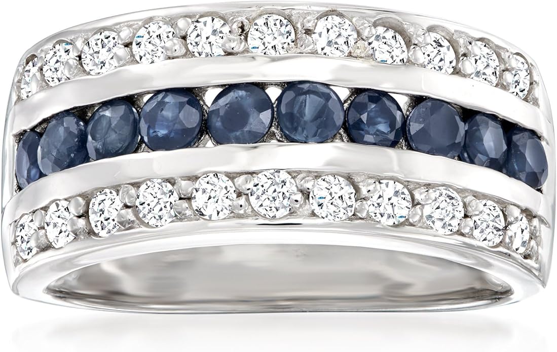 Ross-Simons 0.80 ct. t.w. Sapphire and .65 ct. t.w. White Topaz Multi-Row Ring in Sterling Silver