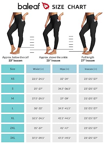 BALEAF Leggings with Pockets for Women Tummy Control Workout High Waisted Athletic Ultra Soft 7/8 Gym Yoga Petite Ankle Pants Black L