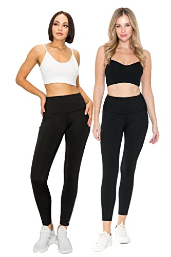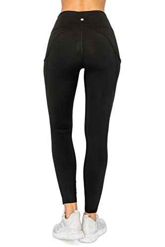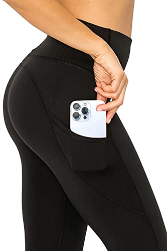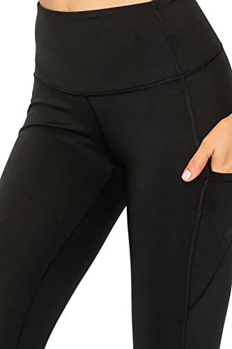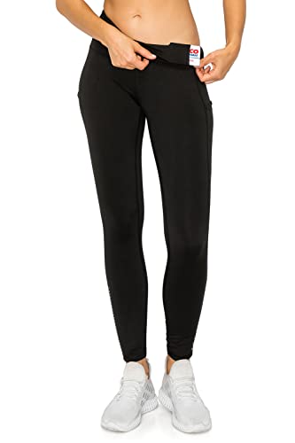 Leggings Depot Womens Pants - Reflective 7/8 Yoga Pants with Pockets, Black, Medium