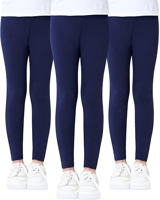 Domee Girls Cotton Leggings Full Length Solid Pants Pack of 3