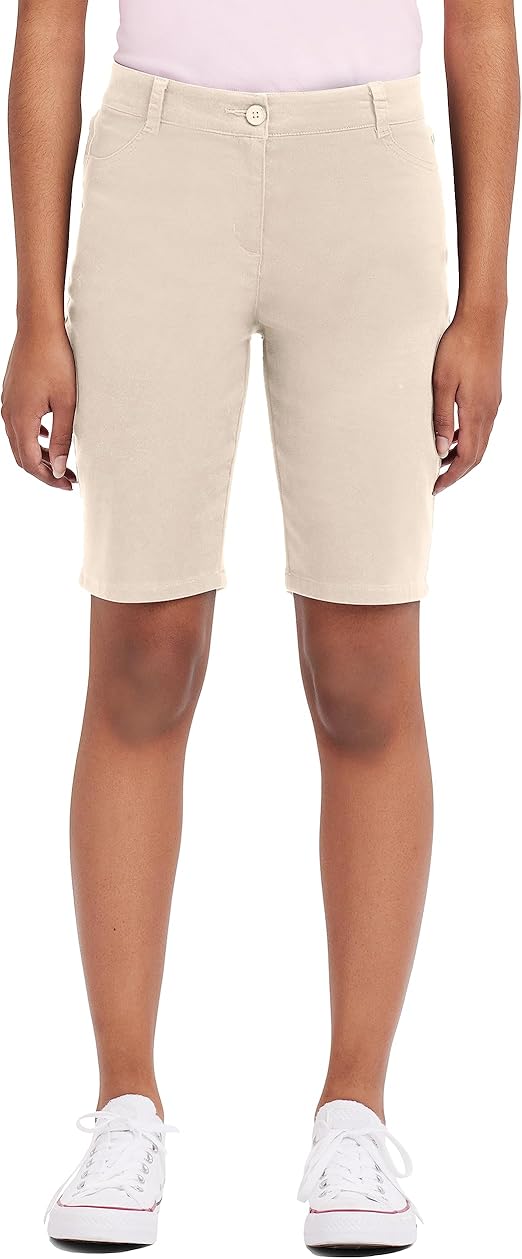IZOD Juniors Uniform Bermuda Shorts, Skinny Style with Hook & Eye Closure, Stretch Twill Fabric