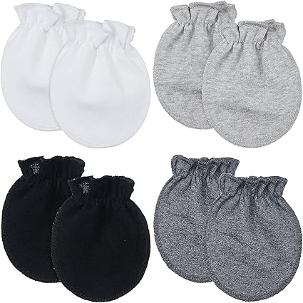 4 Pairs Newborn Baby Cotton Mittens No Scratch Gloves Newborn Mittens for 0-6 Months Baby