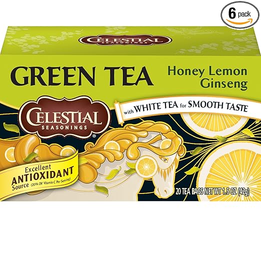 Celestial Seasonings Green Tea, Honey Lemon Ginseng, 20 Count (Pack of 6)