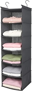 MAX Houser 6 Tier Shelf Hanging Closet Organizer, Closet Hanging Shelf with 2 Sturdy Hooks for Storage, Foldable (Grey)