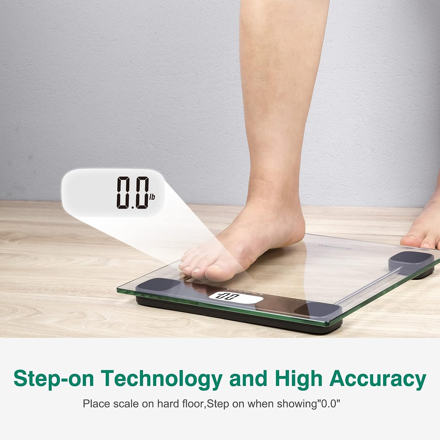 • Digital Bathroom Scale - Step on the auto-calibrated platform and get accurate readings instantly, No more tapping to activate the scale