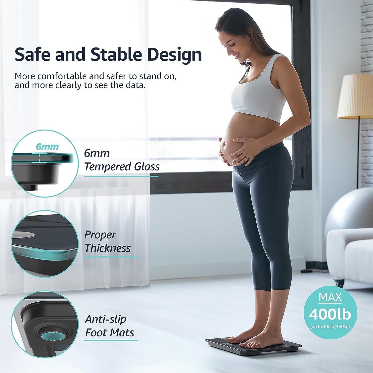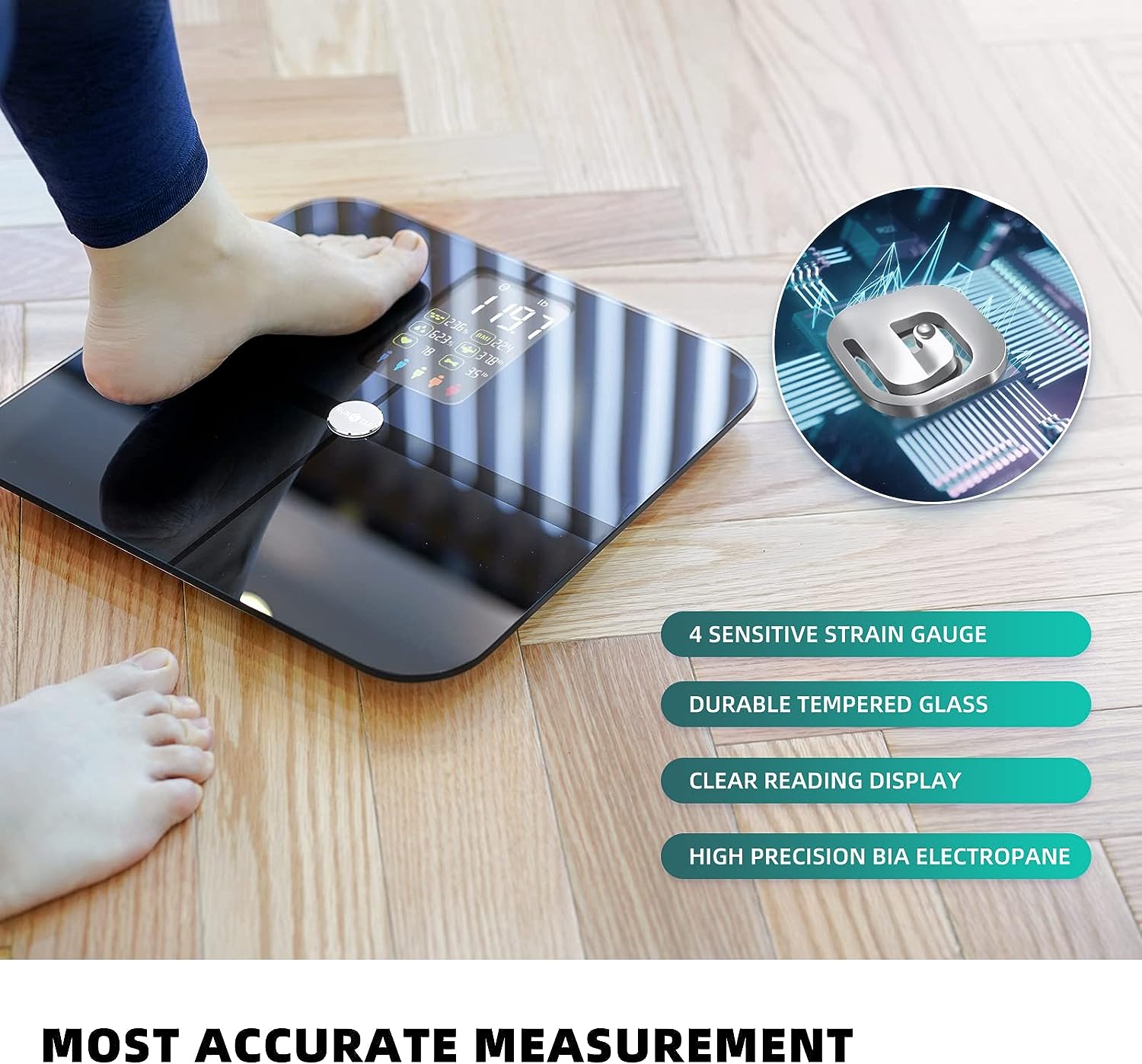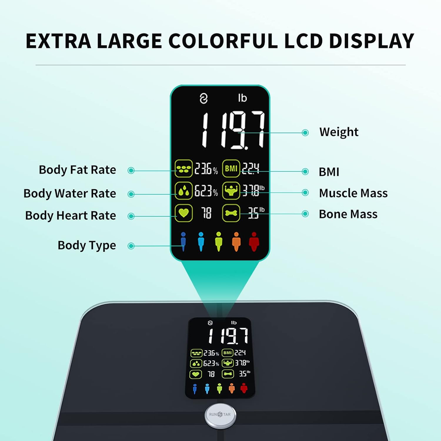 Body Fat Scale, Posture Extra Large Display Digital Bathroom Wireless Weight Scale Composition Analyzer with Heart Rate Heart Index & Body Shape Index with Free APP 400Lb Black