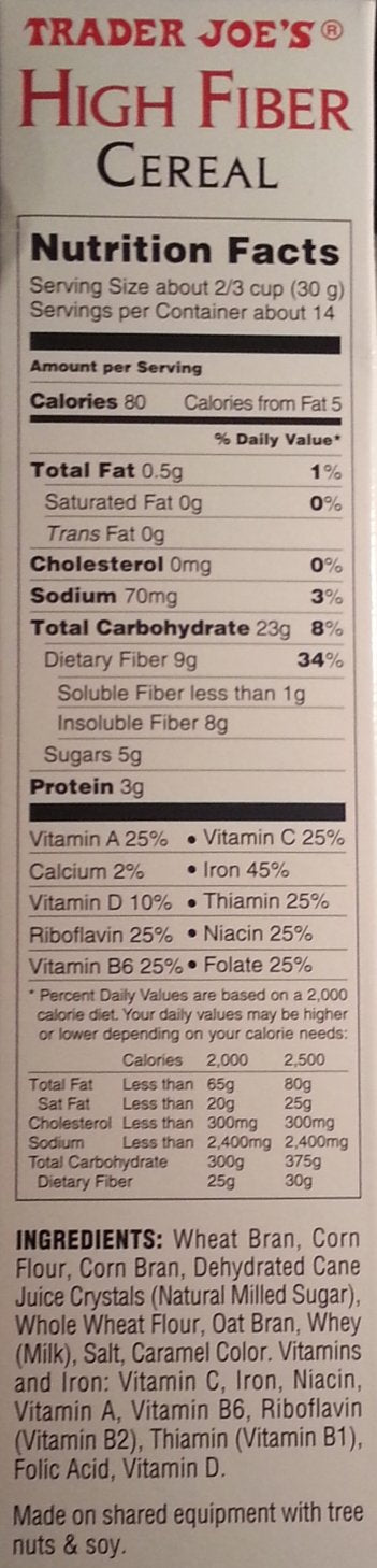 Trader Joe's High Fiber Cereal, 14.5 oz (2 PACK)
