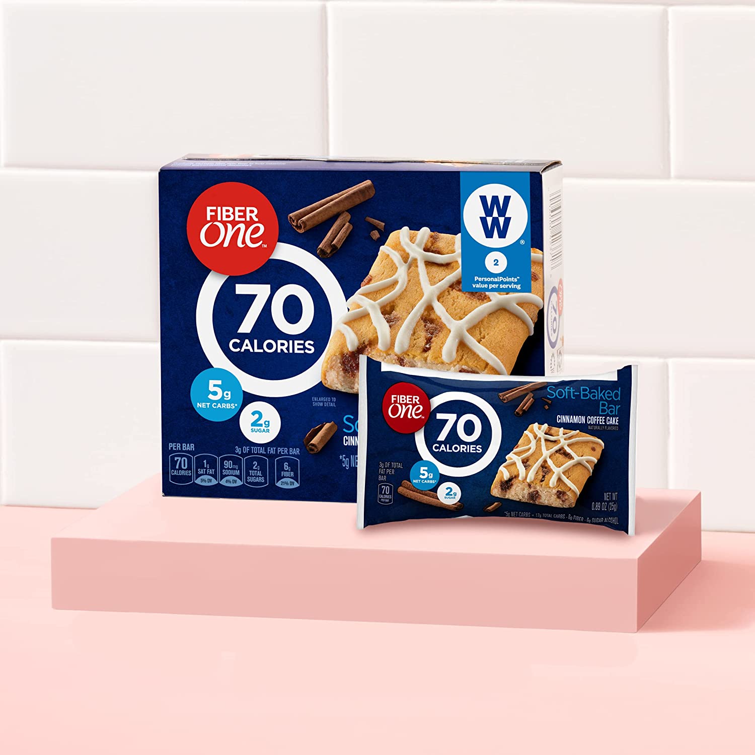 Enjoy an indulgent moment without any of the guilt with Fiber One Cinnamon Coffee Cake Snack Bars. These cinnamon and coffee bars have only 70 calories and 2 grams of sugar for a delicious fiber bar you can feel good about eating. Each fiber bar contains at least 20% daily value of fiber, and diets high in fiber can help keep your digestive system on track. Choose Fiber One for breakfast bars, office snacks or as an on-the-go treat. Fiber One bars come in many great-tasting flavors: Cinnamon Coffee Cake, Birthday Cake, Mint Fudge, Lemon and Chocolate Fudge.