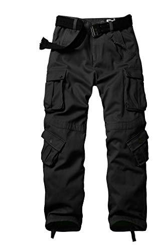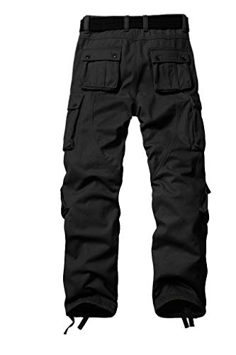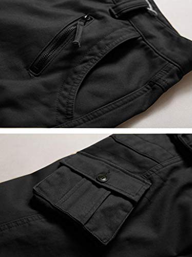 AKARMY Men's Fleece Lined Hiking Pants Outdoor Cargo Pants Casual Work Ski Pants with 8 Pockets Black 32