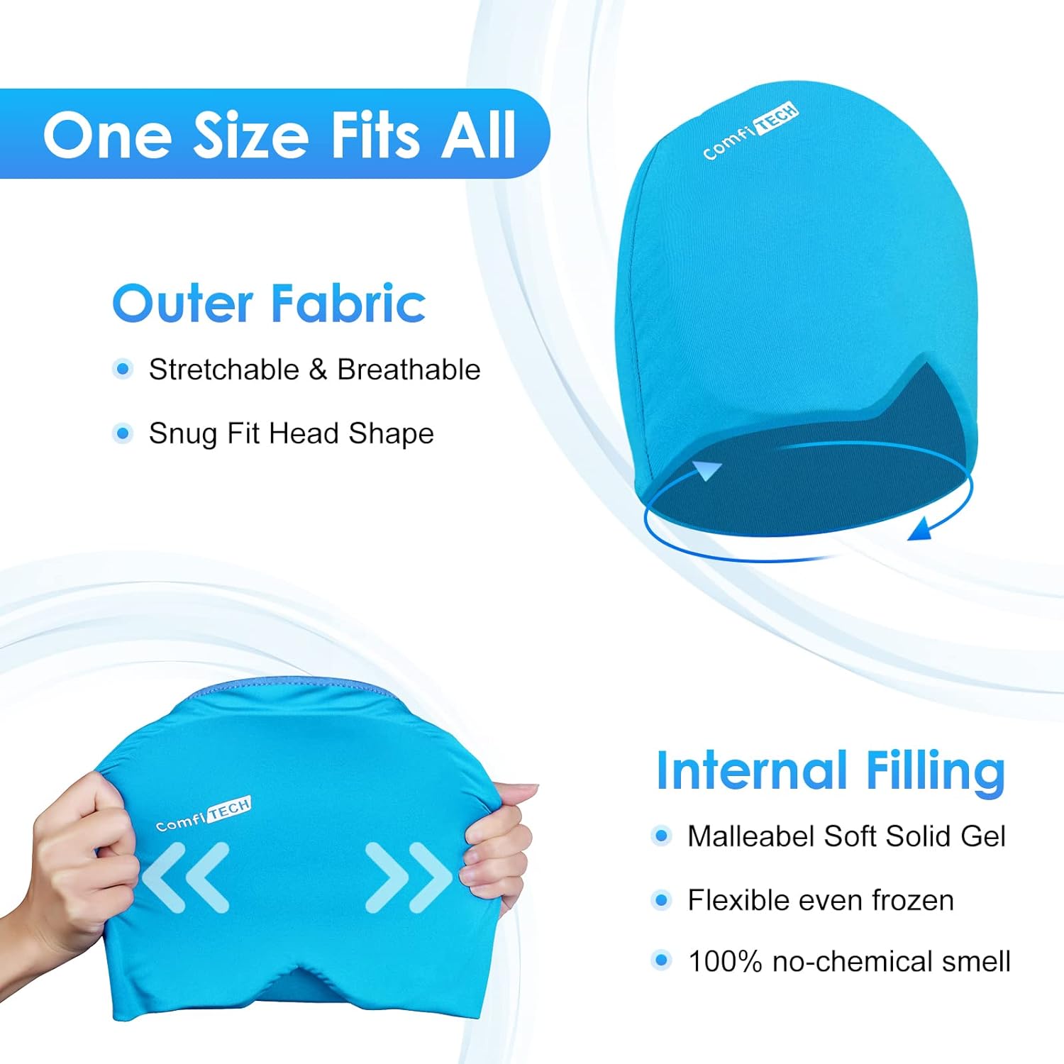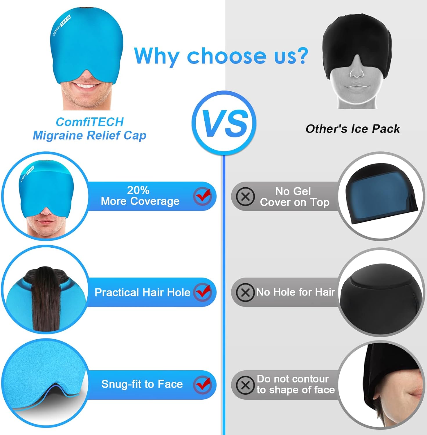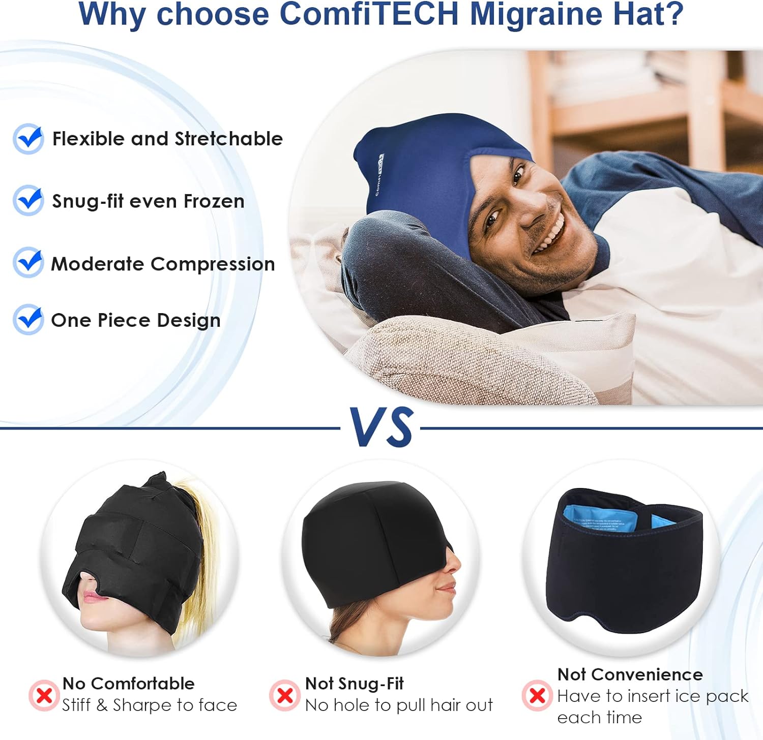 • Safe Expert-grade Cooling Gel - Solid gel migraine wrap is totally safe and resists tearing and leaking so headache cap could be used on bare skin. ComfiTECH customer support team provides 100% satisfaction service to customers. You will get 30 Days free of return and prompt and satisfying customer service. Hassle free and try migraine relief cap now.