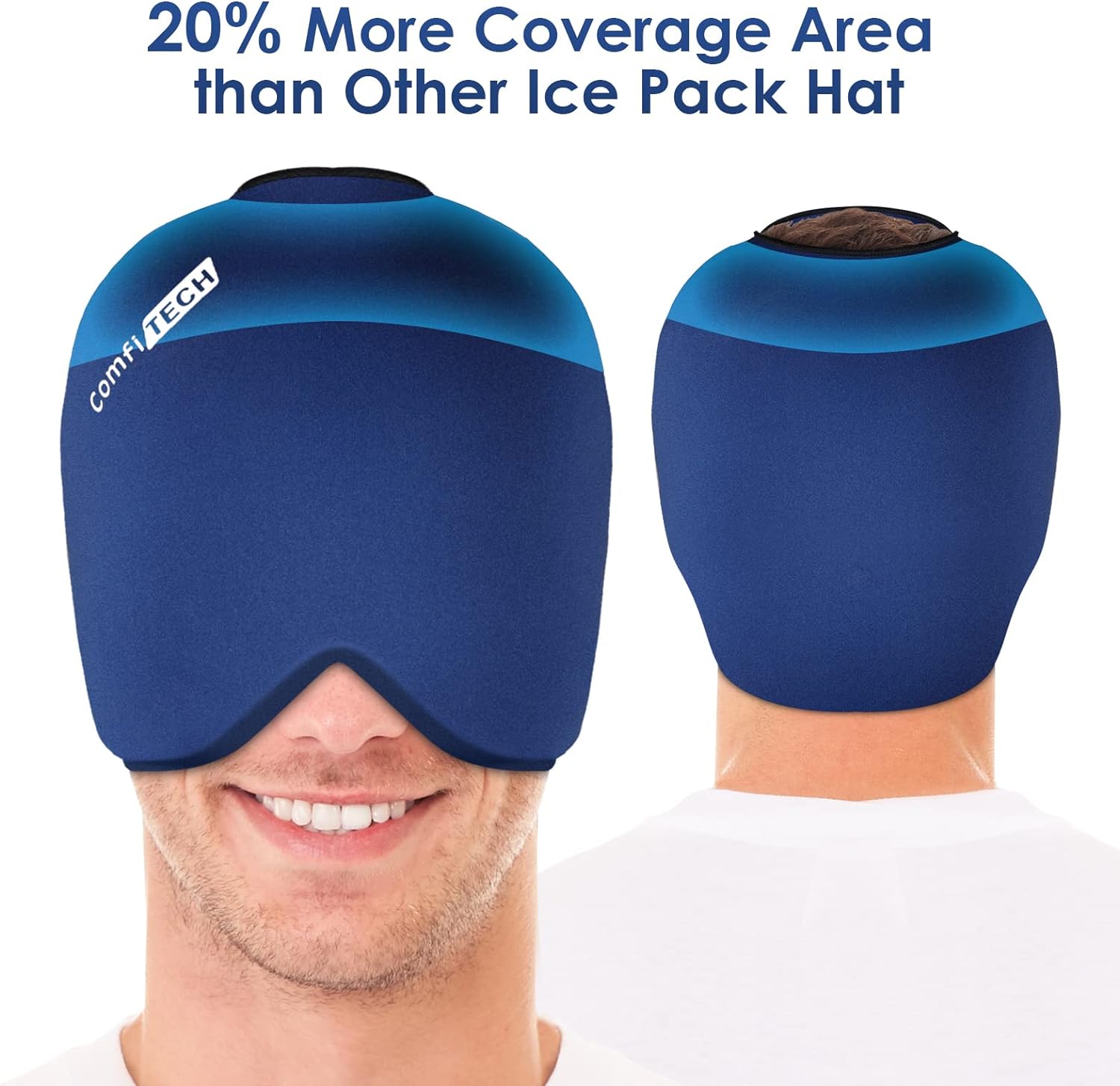 ComfiTECH Migraine Ice Head Wrap, Headache Relief Hat for Tension Puffy Eyes Migraine Relief Cap for Sinus Headache and Stress Relief Cold Compress (Medium Black)