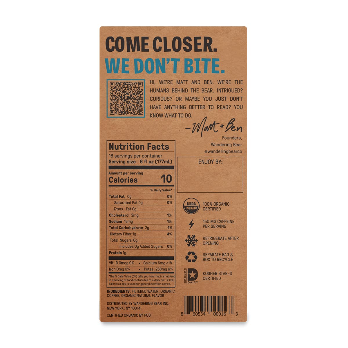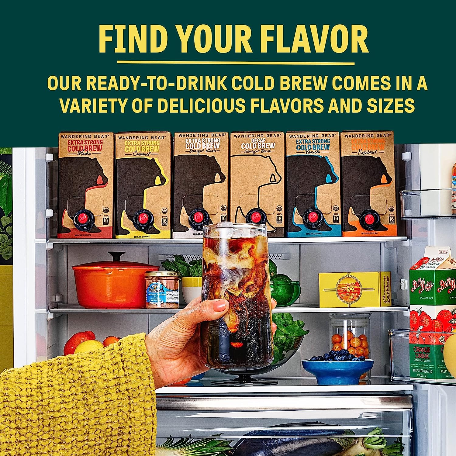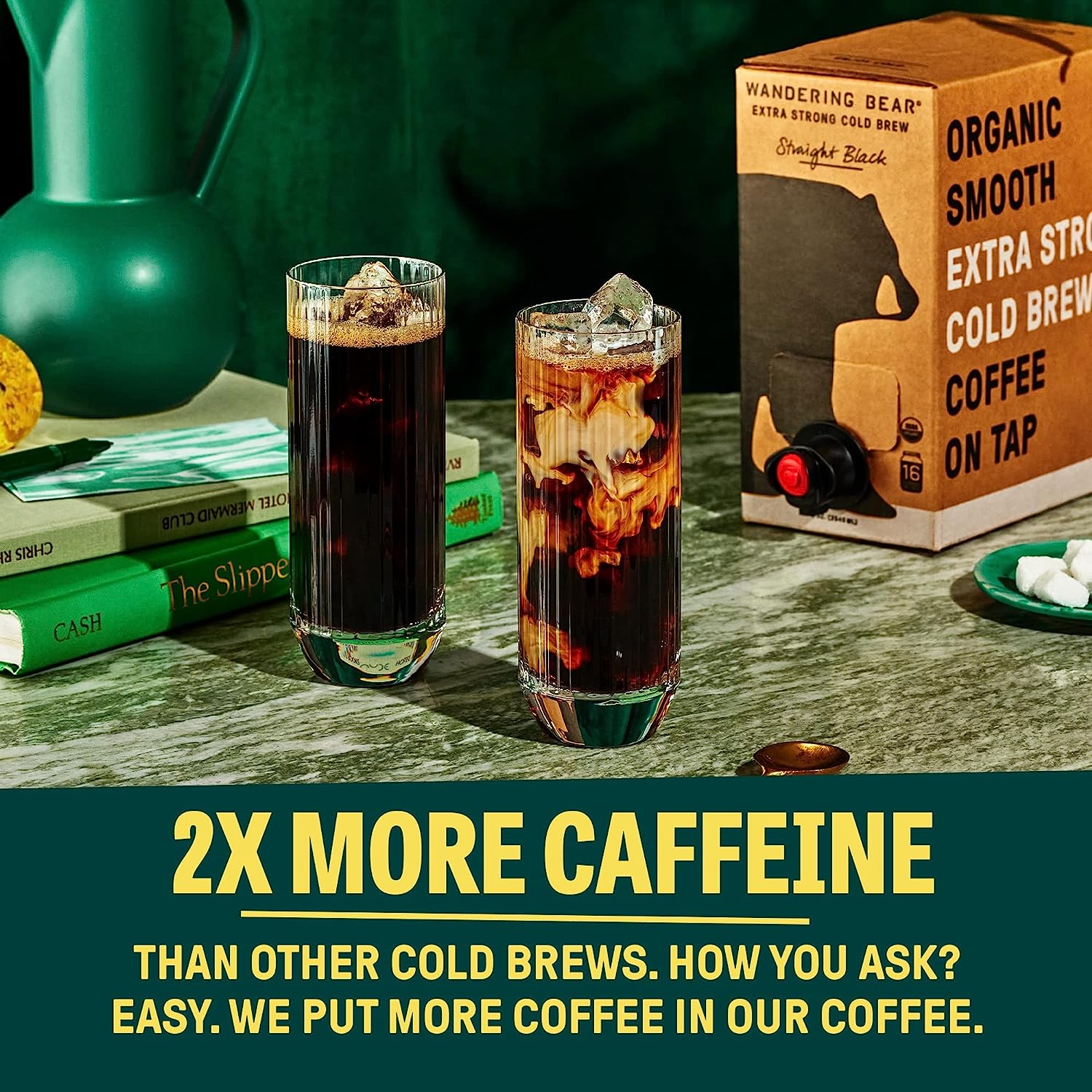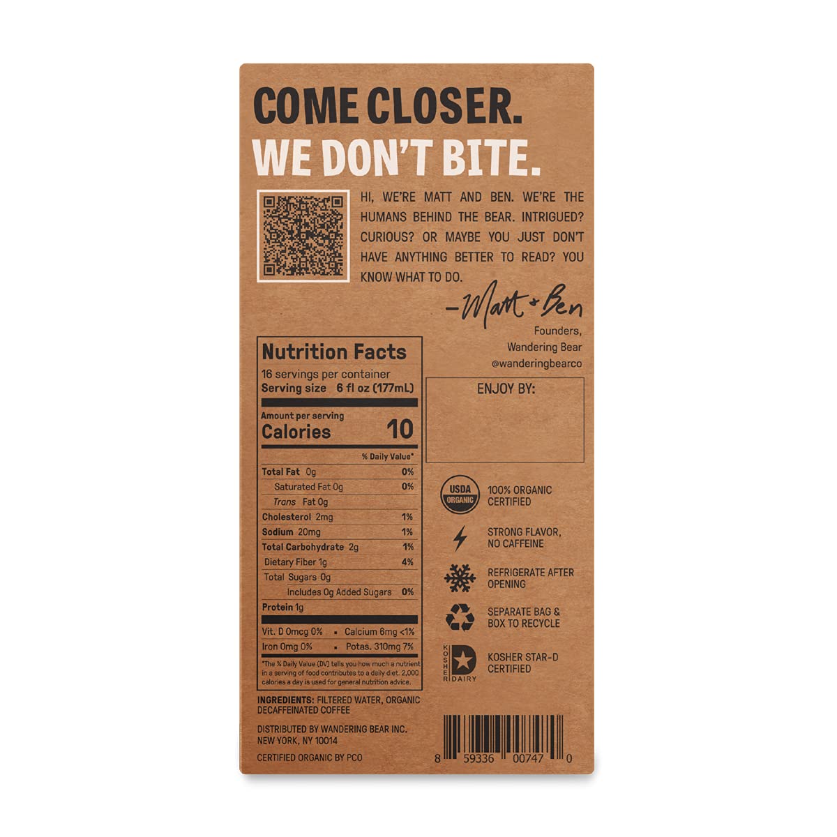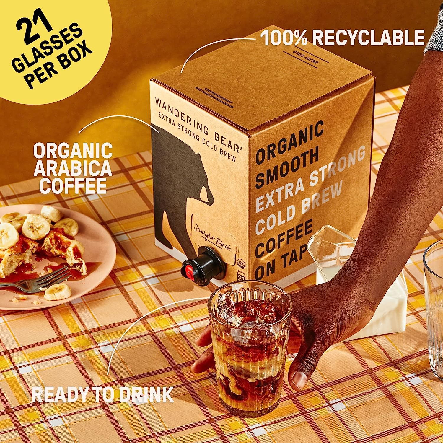Wandering Bear Organic DECAF Cold Brew Coffee On Tap, 96 fl oz - Extra Strong, Smooth, Unsweetened, Shelf-Stable, and Ready to Drink Iced Coffee, Cold Brewed Coffee, Cold Coffee