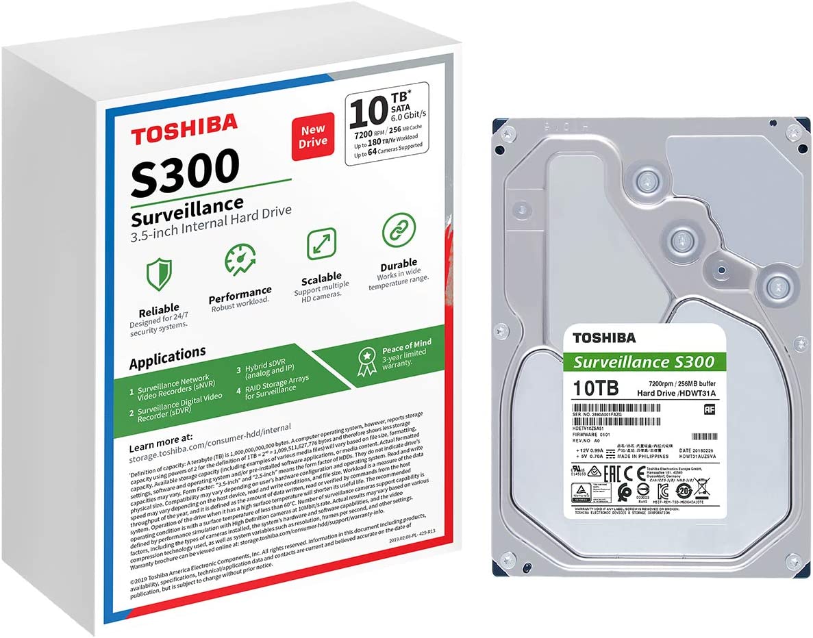 For those serious about security, The Toshiba S300 surveillance internal hard drive has you covered from every angle. The S300 offers equally high Performance and surveillance-critical reliability Designed for 24/7 operation in your home office and small office video surveillance systems. Engineered for high durability, The S300 surveillance hard drive supports a robust workload rating and is tested to perform around-the-clock that never sleeps – so that you can.