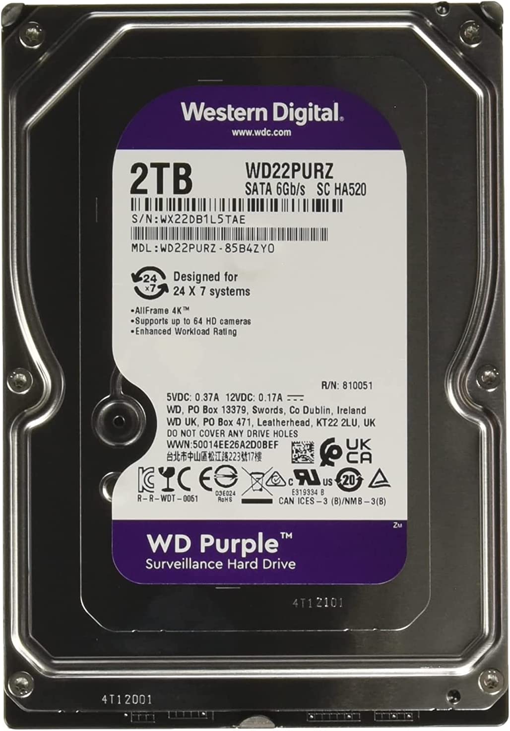 The right drive for the right job. WD Purple drives are engineered specifically for surveillance to help withstand the elevated heat fluctuations and equipment vibrations within NVR environments. An average desktop drive is built to run for only short intervals, not the harsh 24/7 always-on environment of a high-definition surveillance system. With WD Purple, you get reliable, surveillance-class storage that’s tested for compatibility in a wide range of security systems. Exclusive AllFrame technology helps reduce frame loss and improve overall video playback. WD Purple 8TB* and higher drives have additional performance headroom to support a new generation of AI-enabled NVRs, video analytics appliances, and deep-learning servers. * As used for storage capacity, 1TB = one trillion bytes. Actual user capacity may be less, depending on operating environment.