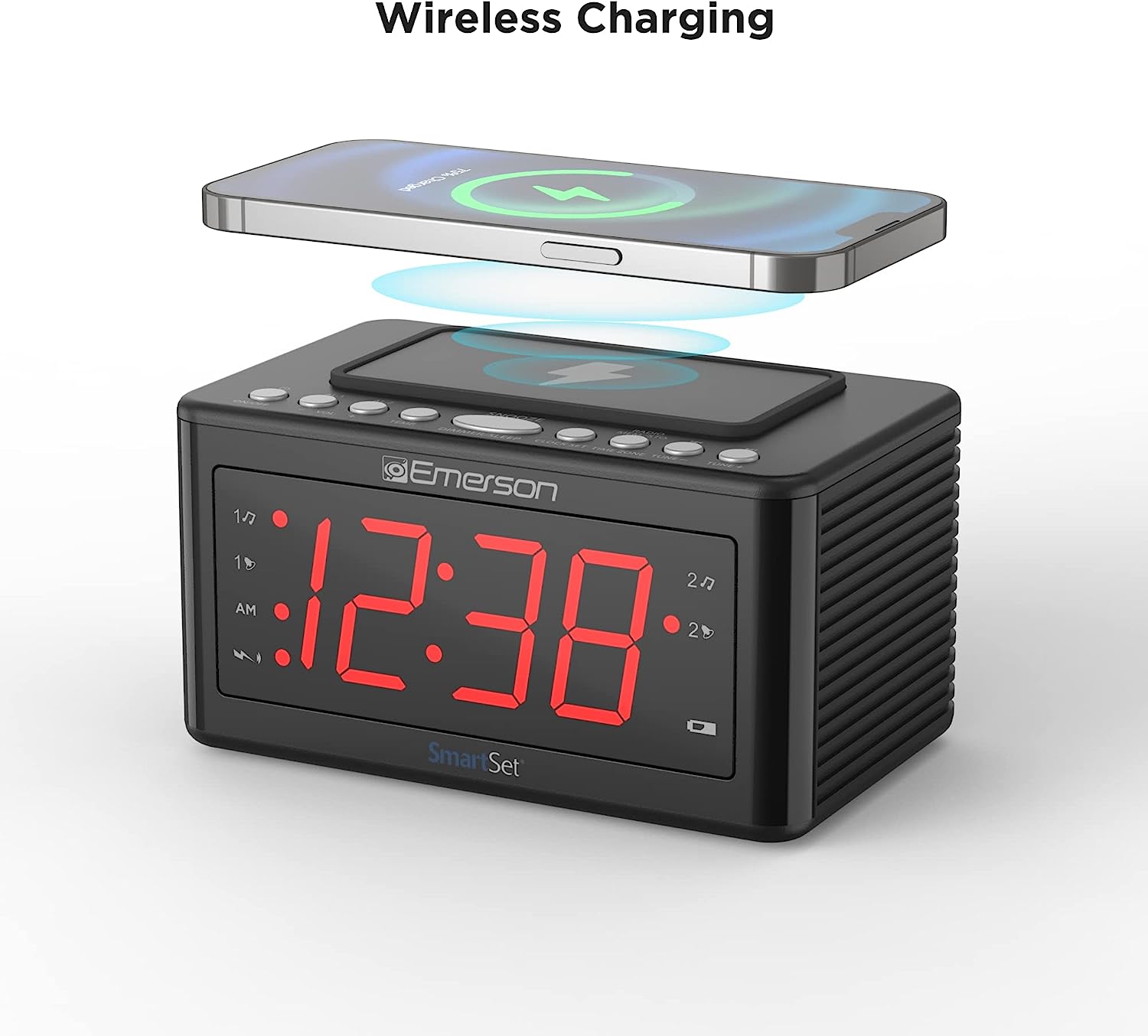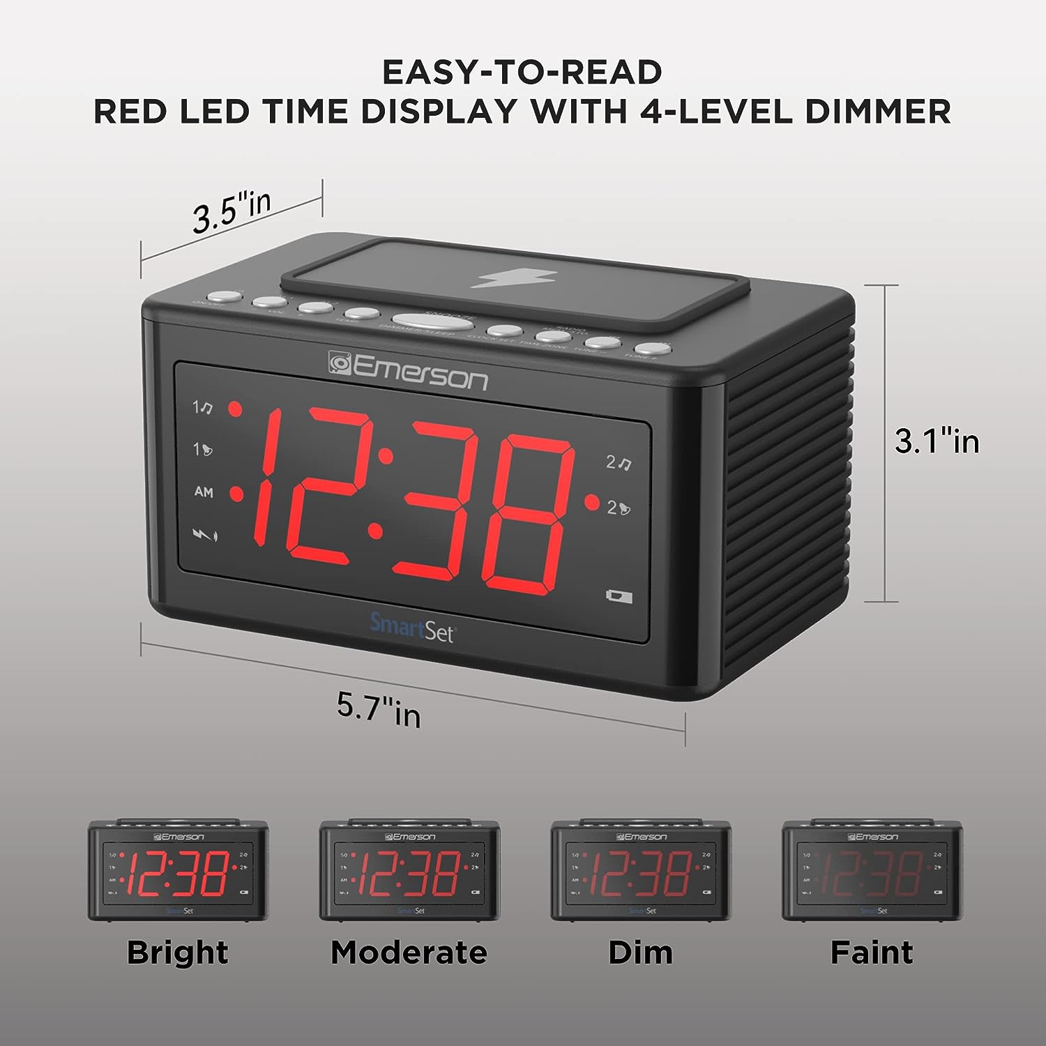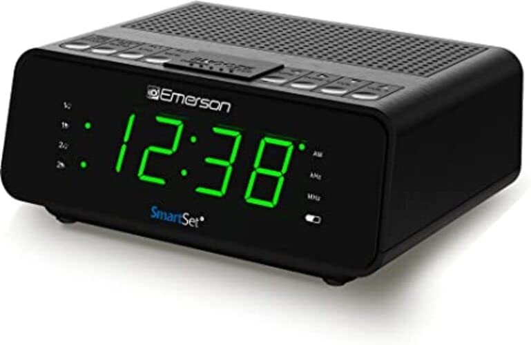 With Emerson's award-winning and Patented smartest technology, the flashing "12: 00" Display is a thing of the past. The CKS1900 clock radio automatically sets itself on the first use to the correct year, Month, date, day, and time. The clock radio features a large, easy-to-read LED display with dimmer control so it is easy on your eyes in the dark. The alarm can be programmed to operate on weekdays only, weekends only, or all seven days of the week. The alarm displays the month and date with the touch of a button. Set the alarm to wake you to your favorite AM/FM music or news station, or to the buzzer. The clock radio adjusts itself automatically for daylight savings time and leap year, as well as maintains the correct time when the power returns after power outages. Getting out of bed will no longer be a chore with the help of the CKS1900.
