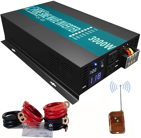 WZRELB 3000watt Pure Sine Wave Inverter 12V DC to 120V AC 60HZ with LED Display Wireless Remote Controller Car Inverter Generator (RBP300012VCRT)