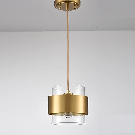 CLAXY Modern Brass Kitchen Pendant Light Height Adjustable Pendant Light Clear Glass Shade