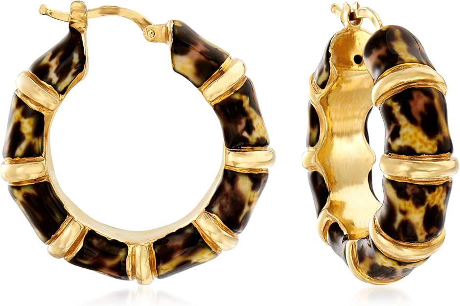 Ross-Simons Italian Leopard-Print Enamel Bamboo-Style Hoop Earrings in 18kt Gold Over Sterling
