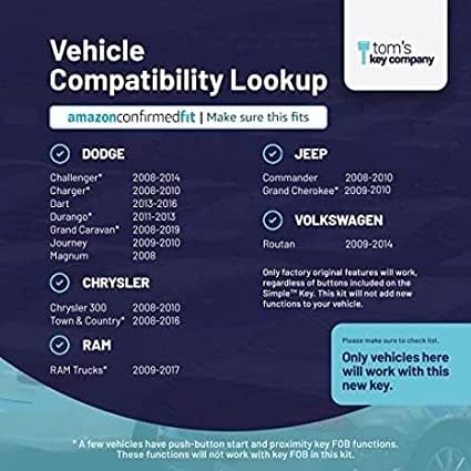 • Compatible with Various Vehicles - Do you own a Chrysler, Dodge, Jeep, Ram, or Volkswagen? We got you covered! Our remote start fob replacement kit is created to fit different models of these car brands. Note: Check details for car year, make, and model compatibility.