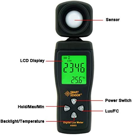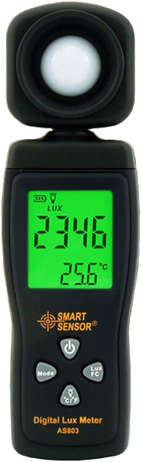 AS803 Lux Light Meter is used to measure intensities of illumination in Lux or Footcandles, including all visible lights such as LED and fluorescent.