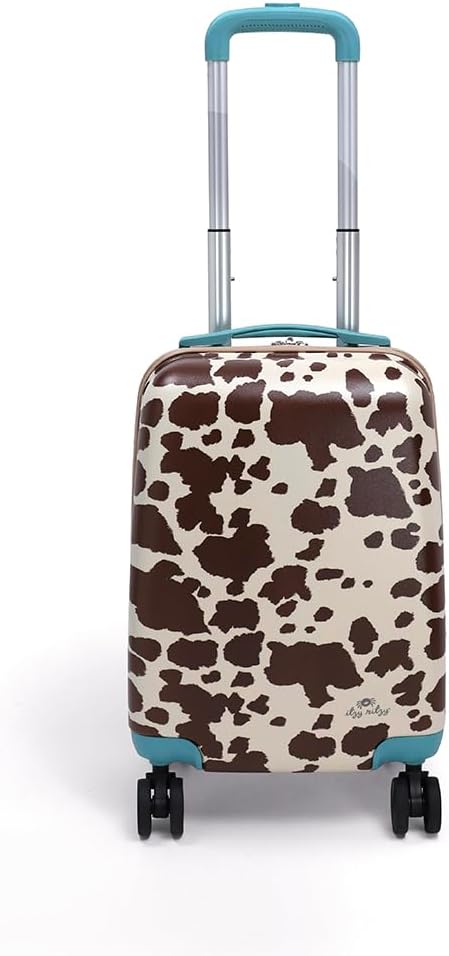 Itzy Ritzy Toddler Suitcase with Adjustable Handle, 360-Degree Spinner Wheels, 2 Interior Compartments and Hard Shell Design; Perfect Kids Luggage with Wheels for Ages 3 and Up (Cow Print)