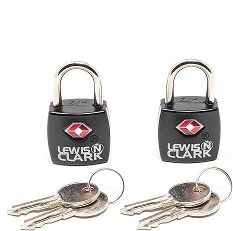 Lewis N. Clark Travel Sentry TSA Lock + Mini Padlock for Luggage Suitcase, Carry On, Backpack, Laptop Bag, Purse, Airport, Hotel & Gym (Includes 4 Keys), 2-Pack, Black